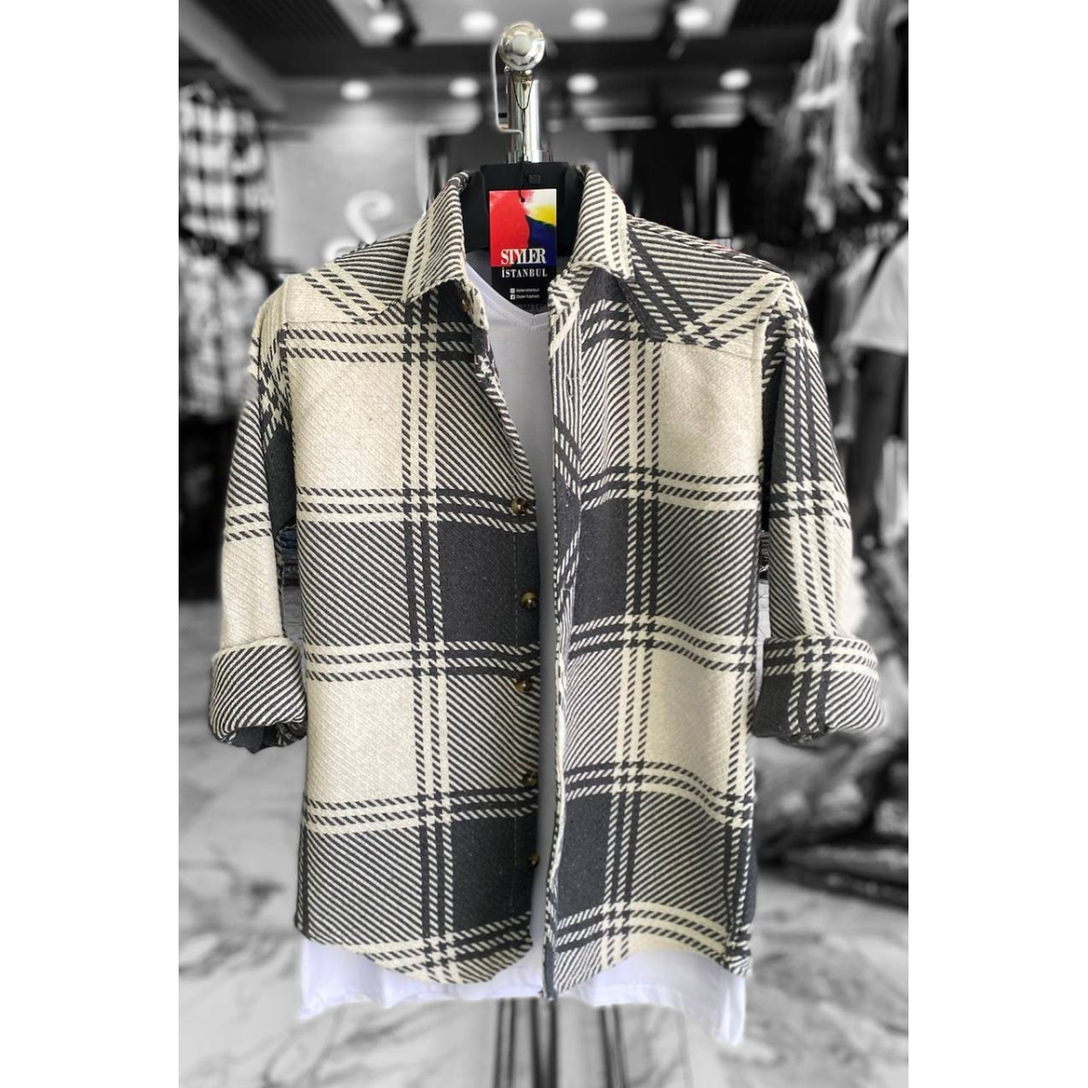Тепла сорочка Бейджин сіро-білий L