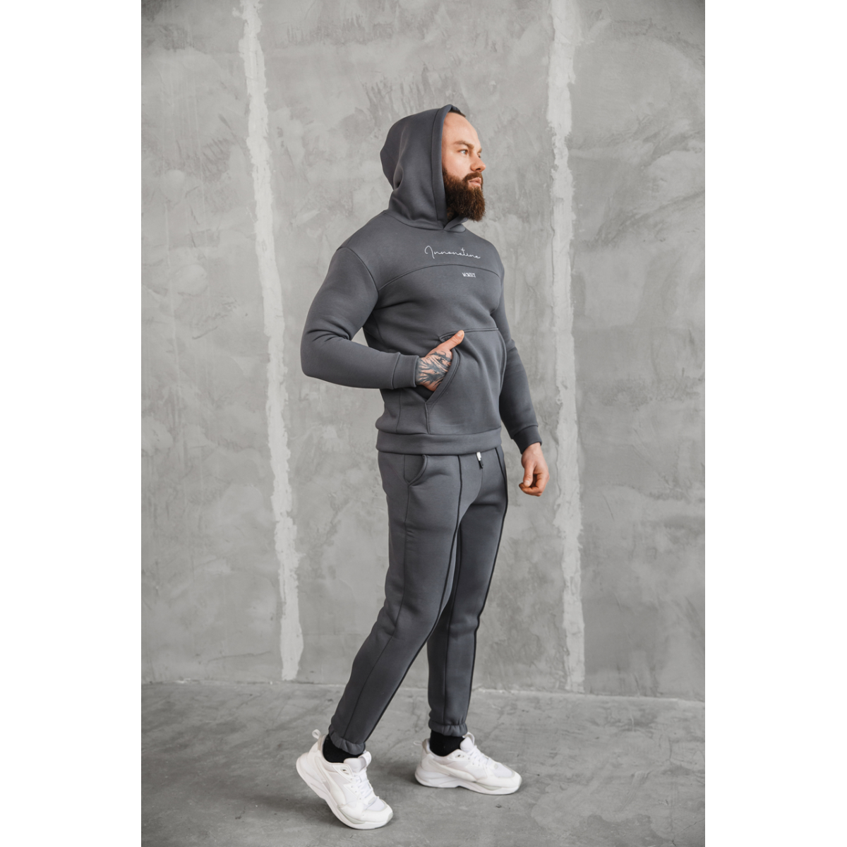 Чоловічий костюм теплий на флісі з тринітки: худі з капюшоном та джогери зі стрілкою