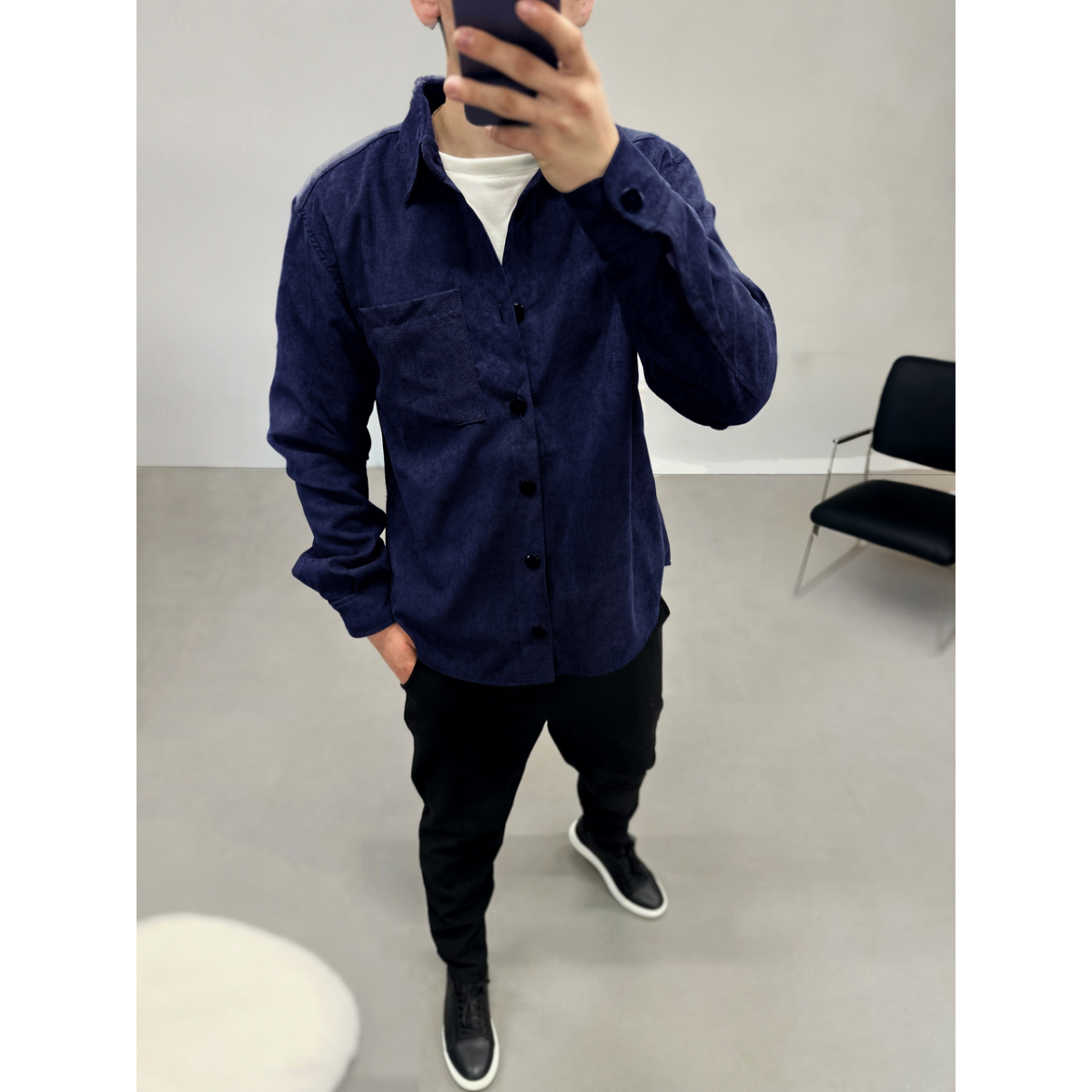 Сорочка вельвет синій M