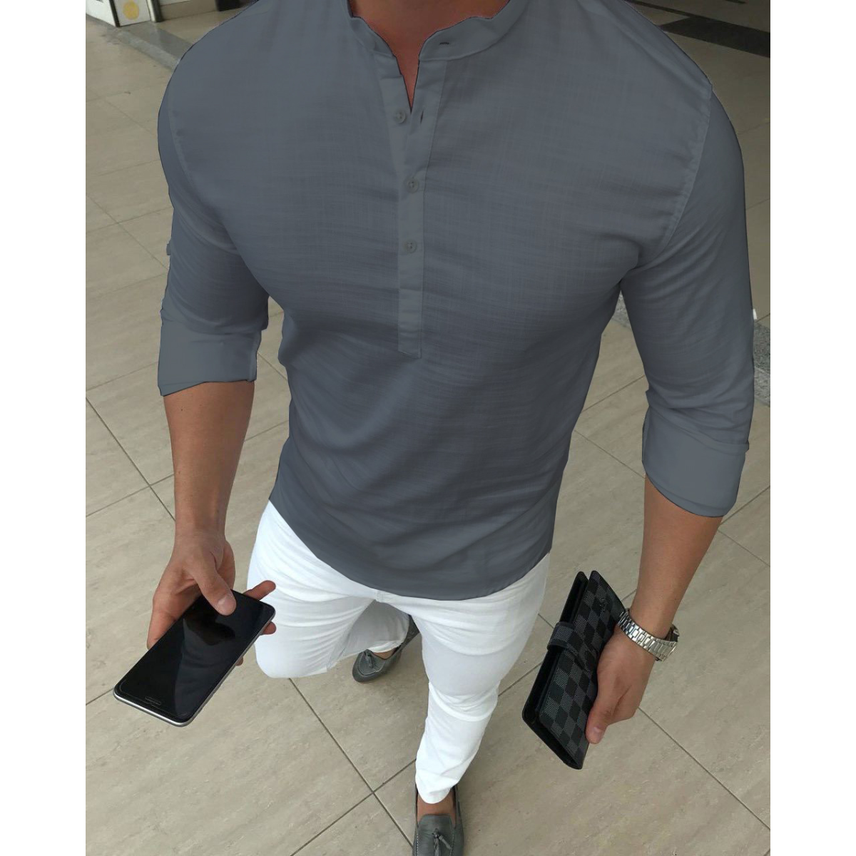 Сорочка льон довгий рукав сірий L