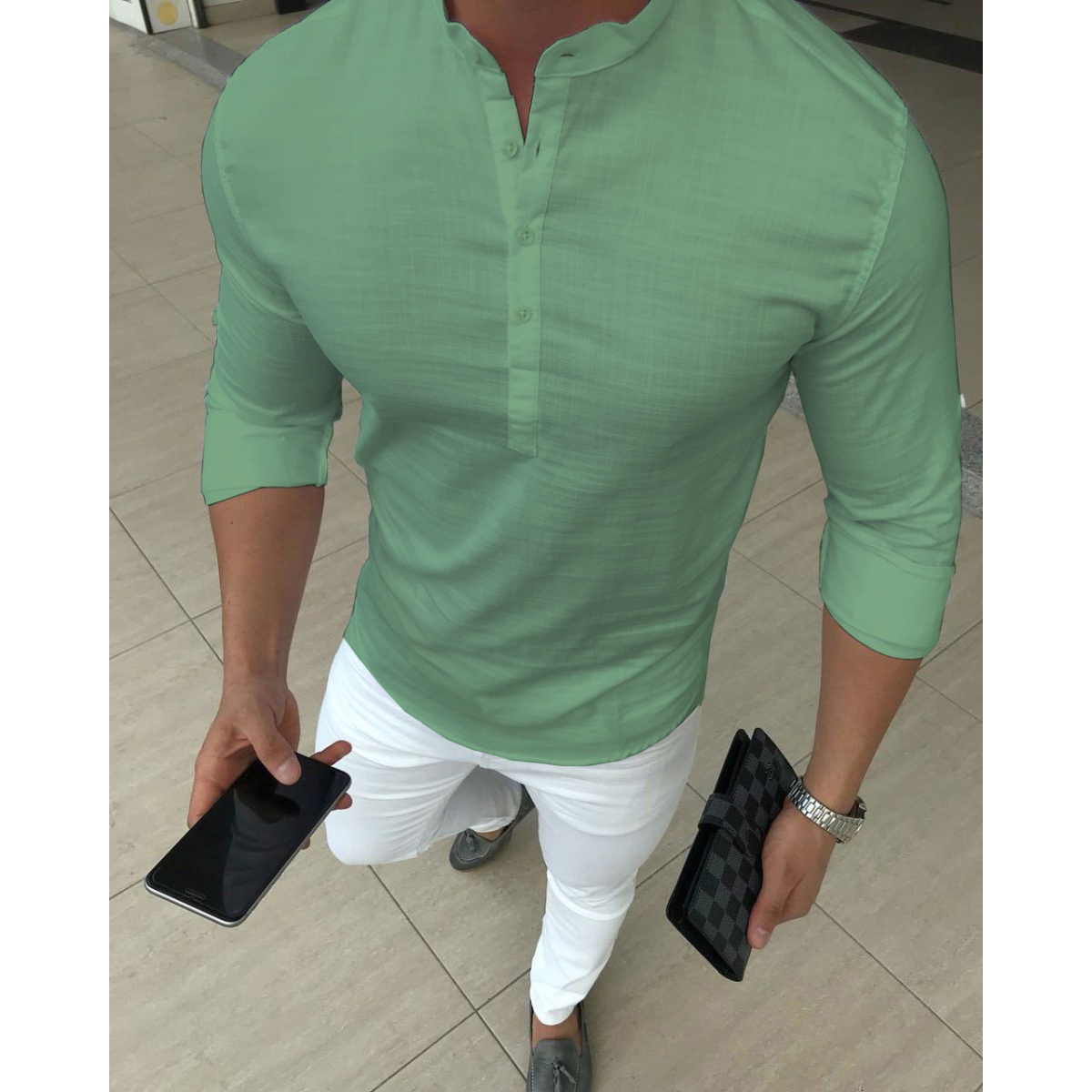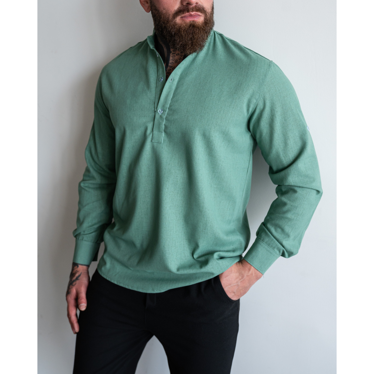 Сорочка льон довгий рукав бірюза M