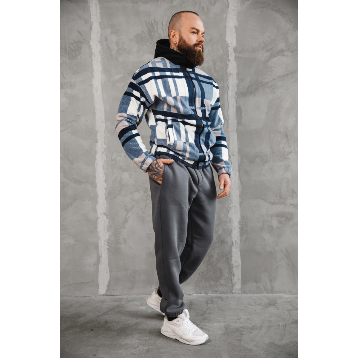 Рубашка полар з капюшоном синий L
