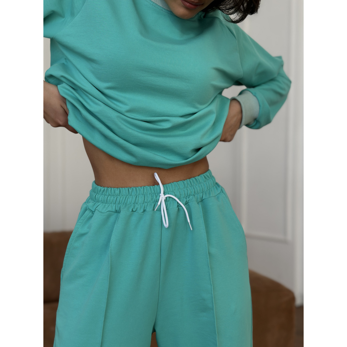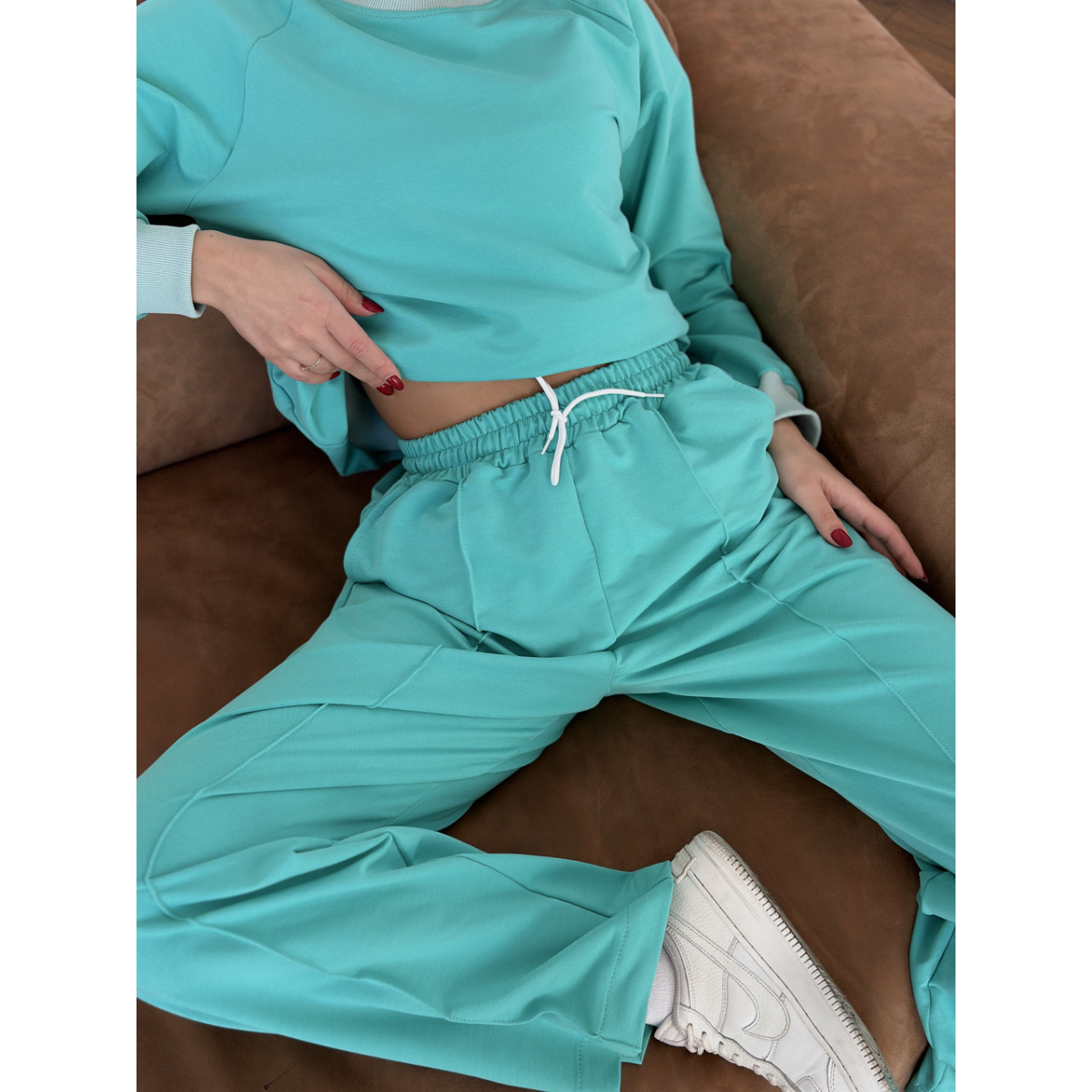 Вільний крій світшота і зручні штани-кльош забезпечують максимальну свободу рухів. Більше ніякого сорому і відчуття «жорсткої» тканини на тілі.