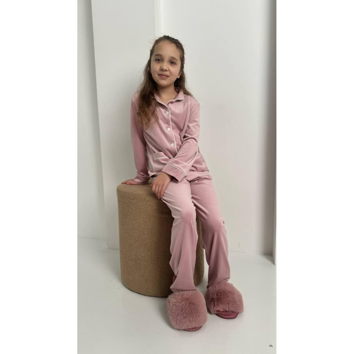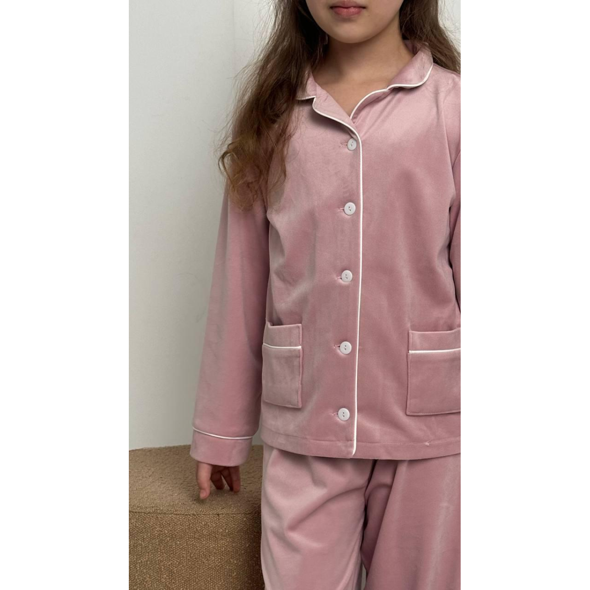 Дитяча піжама з плюшевого велюру – кофтинка на ґудзиках і штани вільного крою