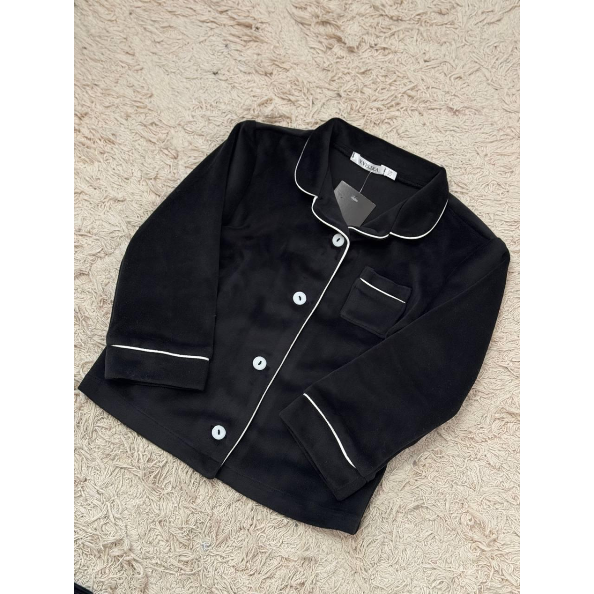 Піжама з плюшевого велюру приємна до тіла, добре тримає тепло та дозволяє шкірі дихати. Завдяки лаконічному дизайну та акуратній кишеньці комплект виглядає стильно та охайно.