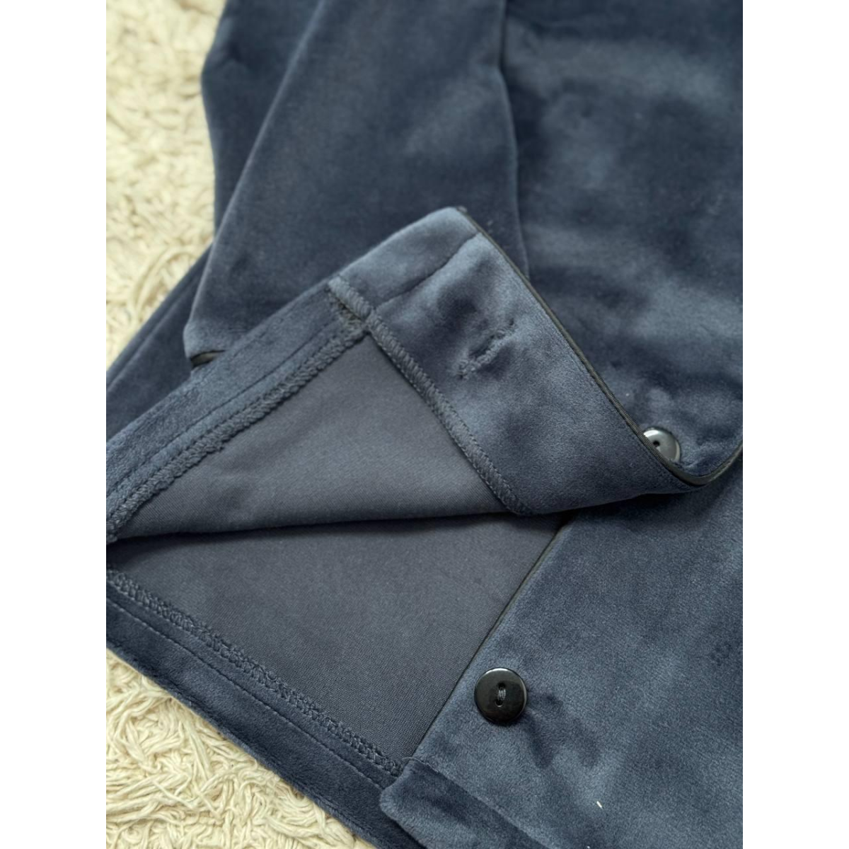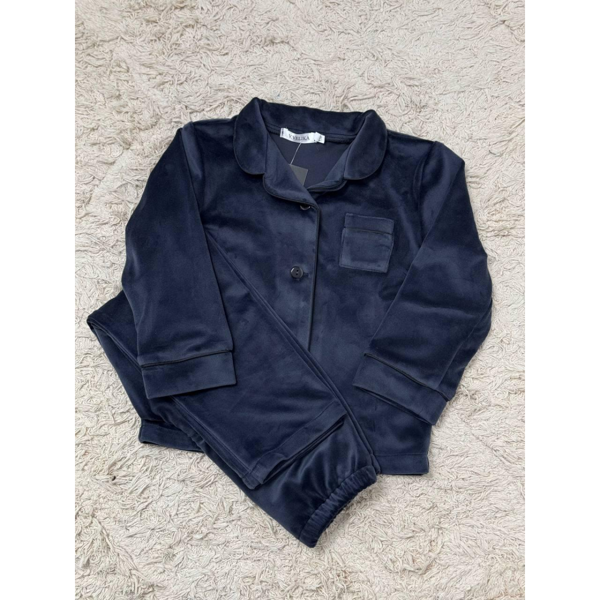 Піжама з плюшевого велюру приємна до тіла, добре тримає тепло та дозволяє шкірі дихати. Завдяки лаконічному дизайну та акуратній кишеньці комплект виглядає стильно та охайно.