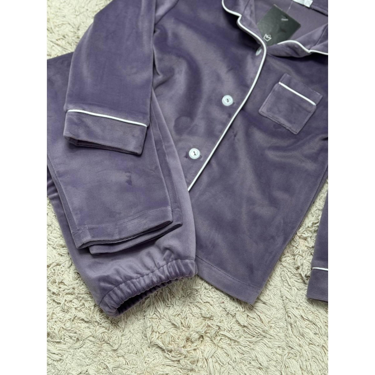 Піжама з плюшевого велюру приємна до тіла, добре тримає тепло та дозволяє шкірі дихати. Завдяки лаконічному дизайну та акуратній кишеньці комплект виглядає стильно та охайно.