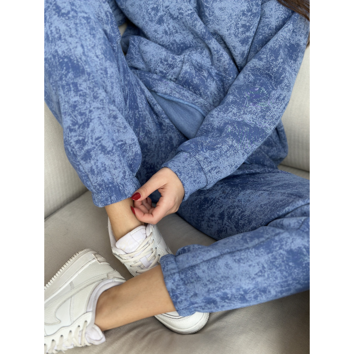Жіночий спортивний костюм із мармуровим принтом - стиль і комфорт в одному образі
