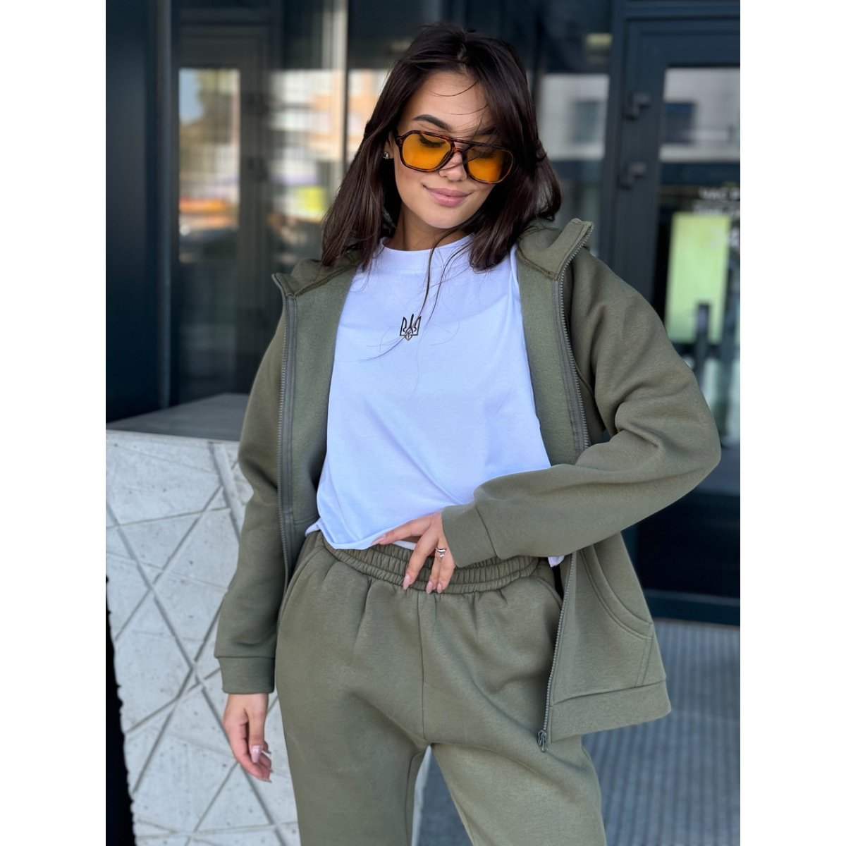 Костюм жіночий теплий на флісі, Хакі, 50/52