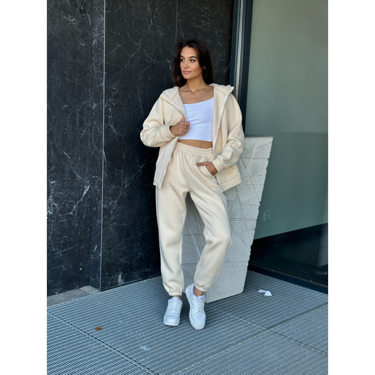 Флісовий жіночий спортивний костюм, Молочний, 46/48