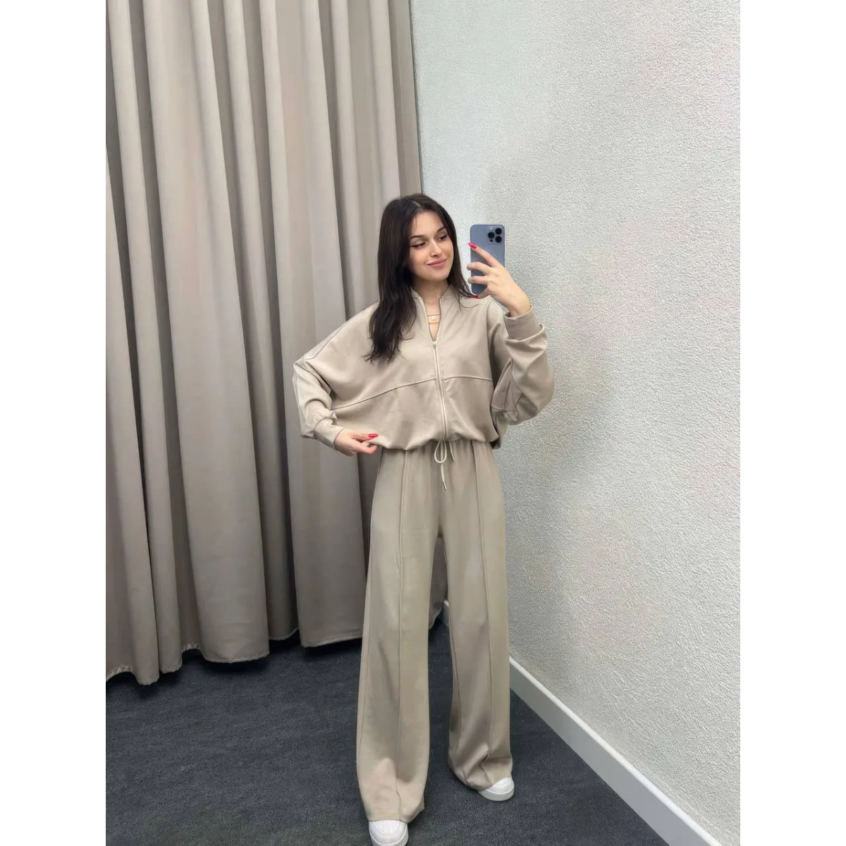 Жіночий спортивний костюм із широкими штанами Бежевий, 50/52
