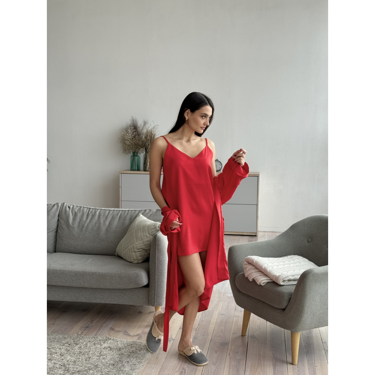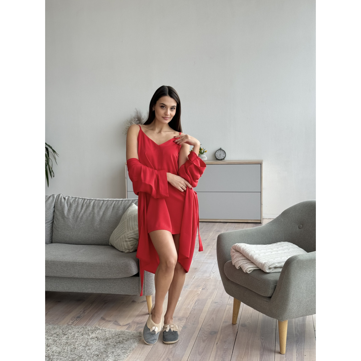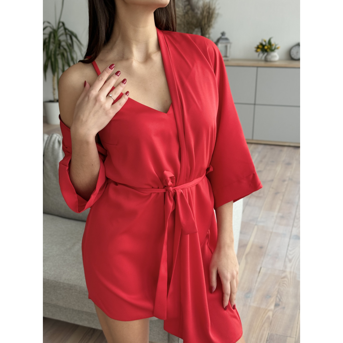 Шовкова нічна сорочка Червоний XS/S