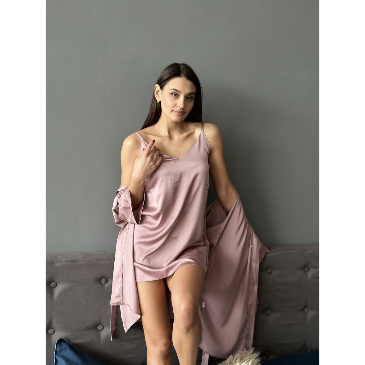 Шовкова нічна сорочка Какао, 3XL/4XI