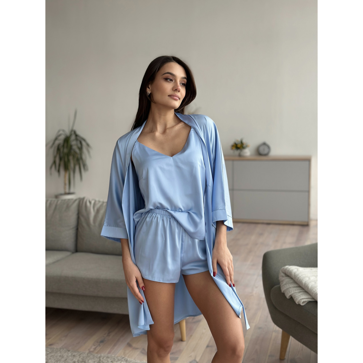 Жіноча піжама із шовку Армані (майка на бретелях + шорти) — легкість і витончений комфорт Піжама із ніжного шовку Армані — це ідеальне поєднання елегантності та зручності. М“яка тканина з благородним блиском приємно торкається шкіри та дарує відчуття ніжності. Особливості моделі: Майка на регульованих бретелях для ідеальної посадки Вільні шорти забезпечують максимальний комфорт Виконана з преміального шовку Армані — легкого, дихаючого матеріалу з сатиновим ефектом Лаконічний елегантний дизайн підходить для дому, сну та відпочинку Обирайте справжню ніжність і стиль — обирайте жіночу піжаму із шовку Армані для найзатишніших моментів.