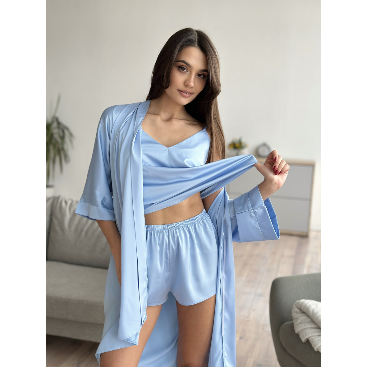 Жіноча піжама із шовку Армані (майка на бретелях + шорти) — легкість і витончений комфорт Піжама із ніжного шовку Армані — це ідеальне поєднання елегантності та зручності. М“яка тканина з благородним блиском приємно торкається шкіри та дарує відчуття ніжності. Особливості моделі: Майка на регульованих бретелях для ідеальної посадки Вільні шорти забезпечують максимальний комфорт Виконана з преміального шовку Армані — легкого, дихаючого матеріалу з сатиновим ефектом Лаконічний елегантний дизайн підходить для дому, сну та відпочинку Обирайте справжню ніжність і стиль — обирайте жіночу піжаму із шовку Армані для найзатишніших моментів.