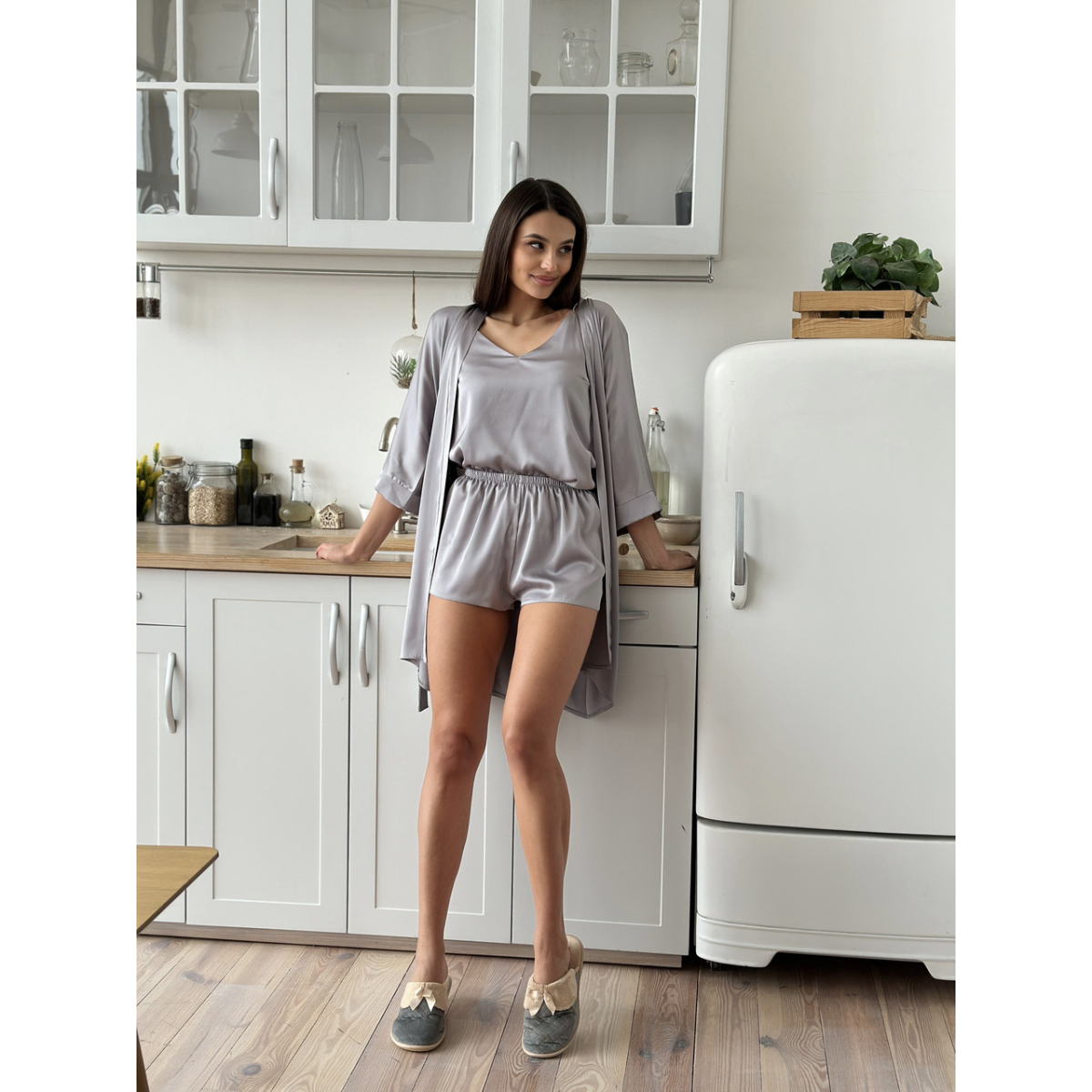 Жіноча піжама із шовку Армані (майка на бретелях + шорти) — легкість і витончений комфорт Піжама із ніжного шовку Армані — це ідеальне поєднання елегантності та зручності. М“яка тканина з благородним блиском приємно торкається шкіри та дарує відчуття ніжності. Особливості моделі: Майка на регульованих бретелях для ідеальної посадки Вільні шорти забезпечують максимальний комфорт Виконана з преміального шовку Армані — легкого, дихаючого матеріалу з сатиновим ефектом Лаконічний елегантний дизайн підходить для дому, сну та відпочинку Обирайте справжню ніжність і стиль — обирайте жіночу піжаму із шовку Армані для найзатишніших моментів.