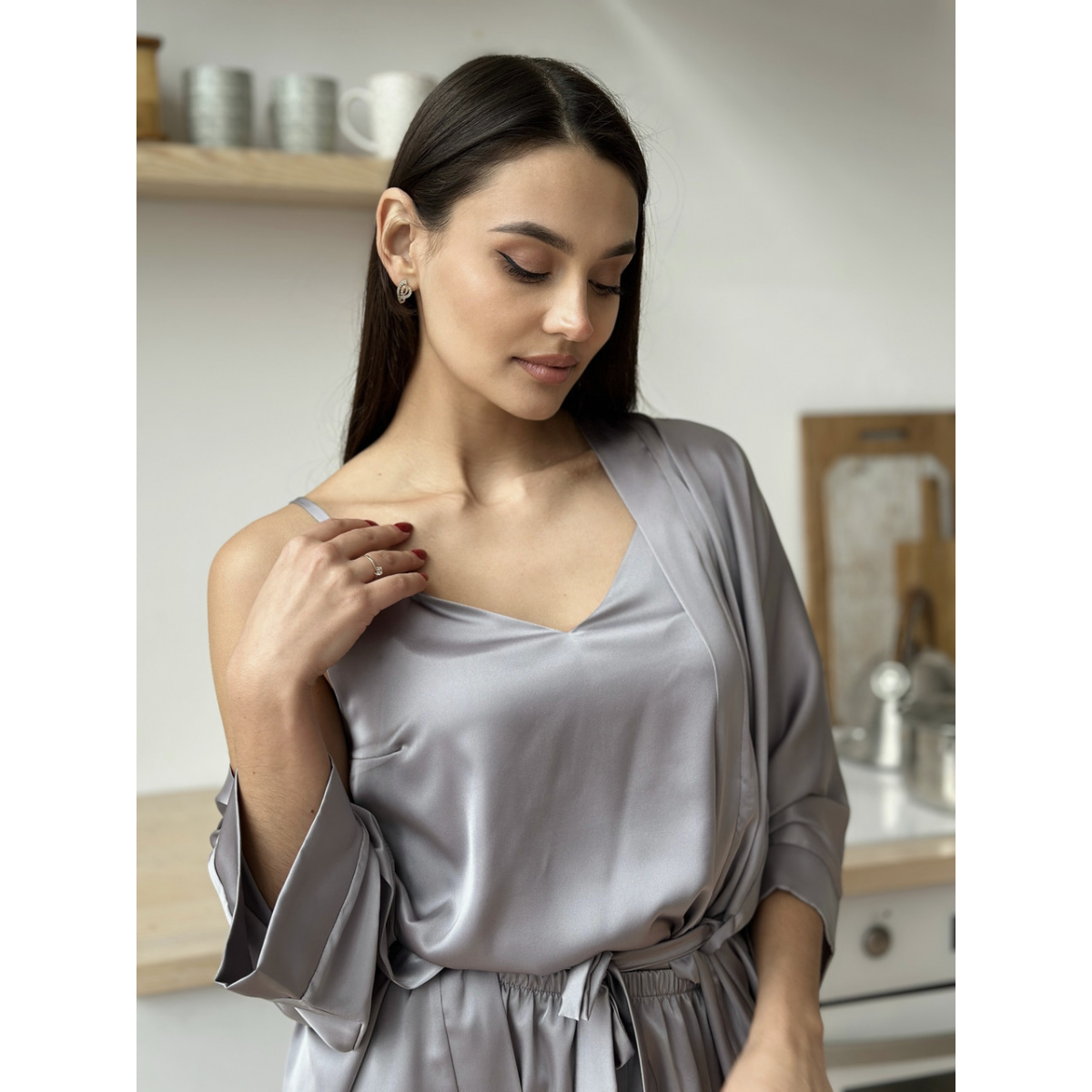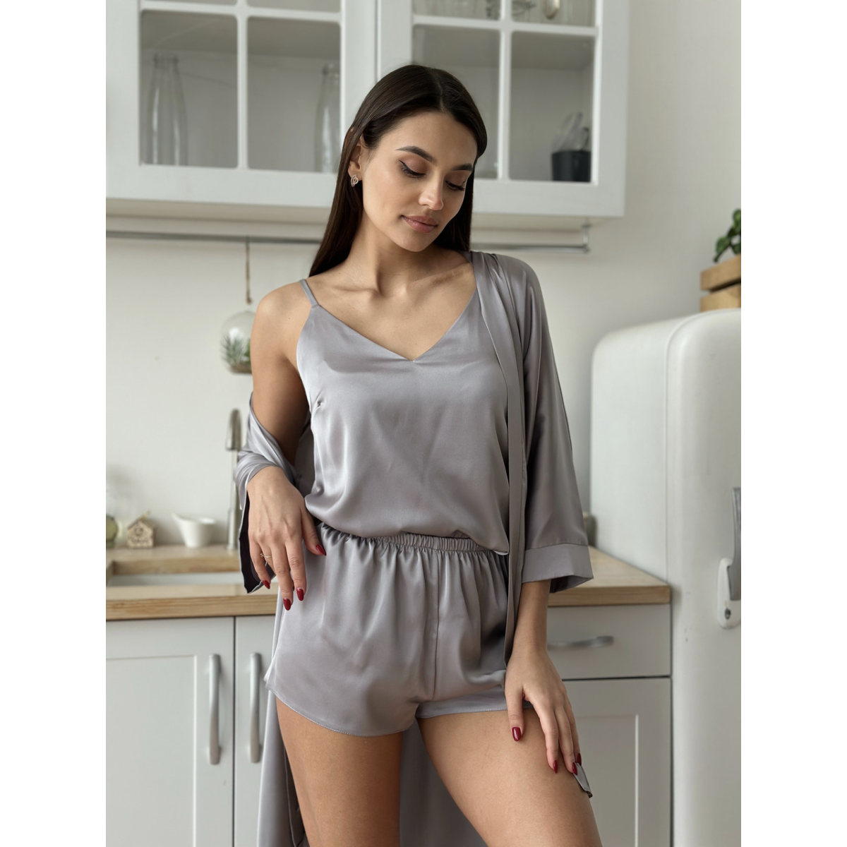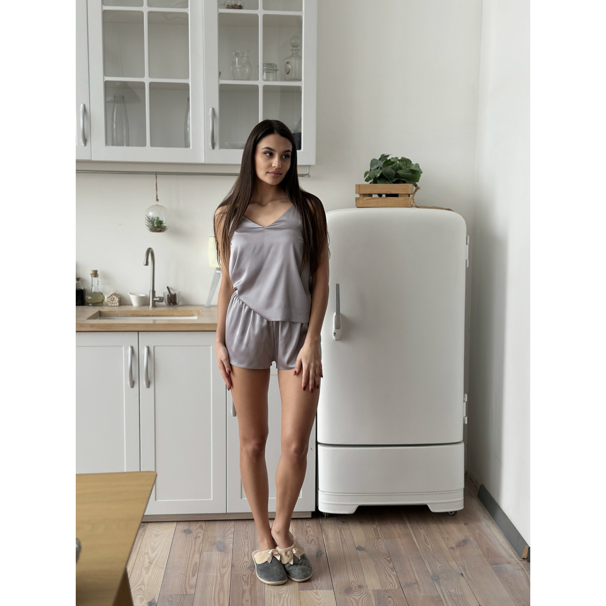 Жіноча піжама із шовку Армані (майка на бретелях + шорти) — легкість і витончений комфорт Піжама із ніжного шовку Армані — це ідеальне поєднання елегантності та зручності. М“яка тканина з благородним блиском приємно торкається шкіри та дарує відчуття ніжності. Особливості моделі: Майка на регульованих бретелях для ідеальної посадки Вільні шорти забезпечують максимальний комфорт Виконана з преміального шовку Армані — легкого, дихаючого матеріалу з сатиновим ефектом Лаконічний елегантний дизайн підходить для дому, сну та відпочинку Обирайте справжню ніжність і стиль — обирайте жіночу піжаму із шовку Армані для найзатишніших моментів.