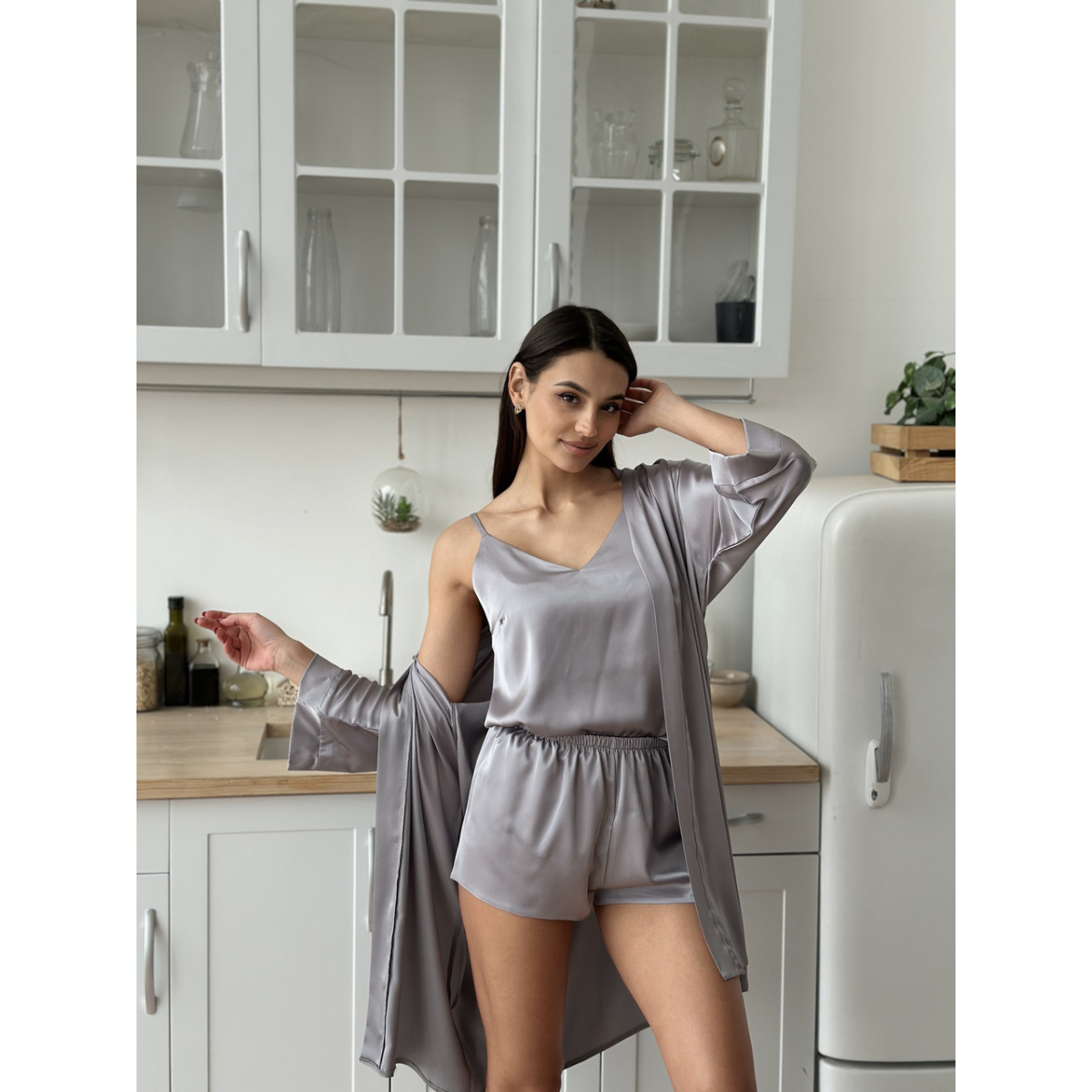 Жіноча піжама із шовку Армані (майка на бретелях + шорти) — легкість і витончений комфорт Піжама із ніжного шовку Армані — це ідеальне поєднання елегантності та зручності. М“яка тканина з благородним блиском приємно торкається шкіри та дарує відчуття ніжності. Особливості моделі: Майка на регульованих бретелях для ідеальної посадки Вільні шорти забезпечують максимальний комфорт Виконана з преміального шовку Армані — легкого, дихаючого матеріалу з сатиновим ефектом Лаконічний елегантний дизайн підходить для дому, сну та відпочинку Обирайте справжню ніжність і стиль — обирайте жіночу піжаму із шовку Армані для найзатишніших моментів.