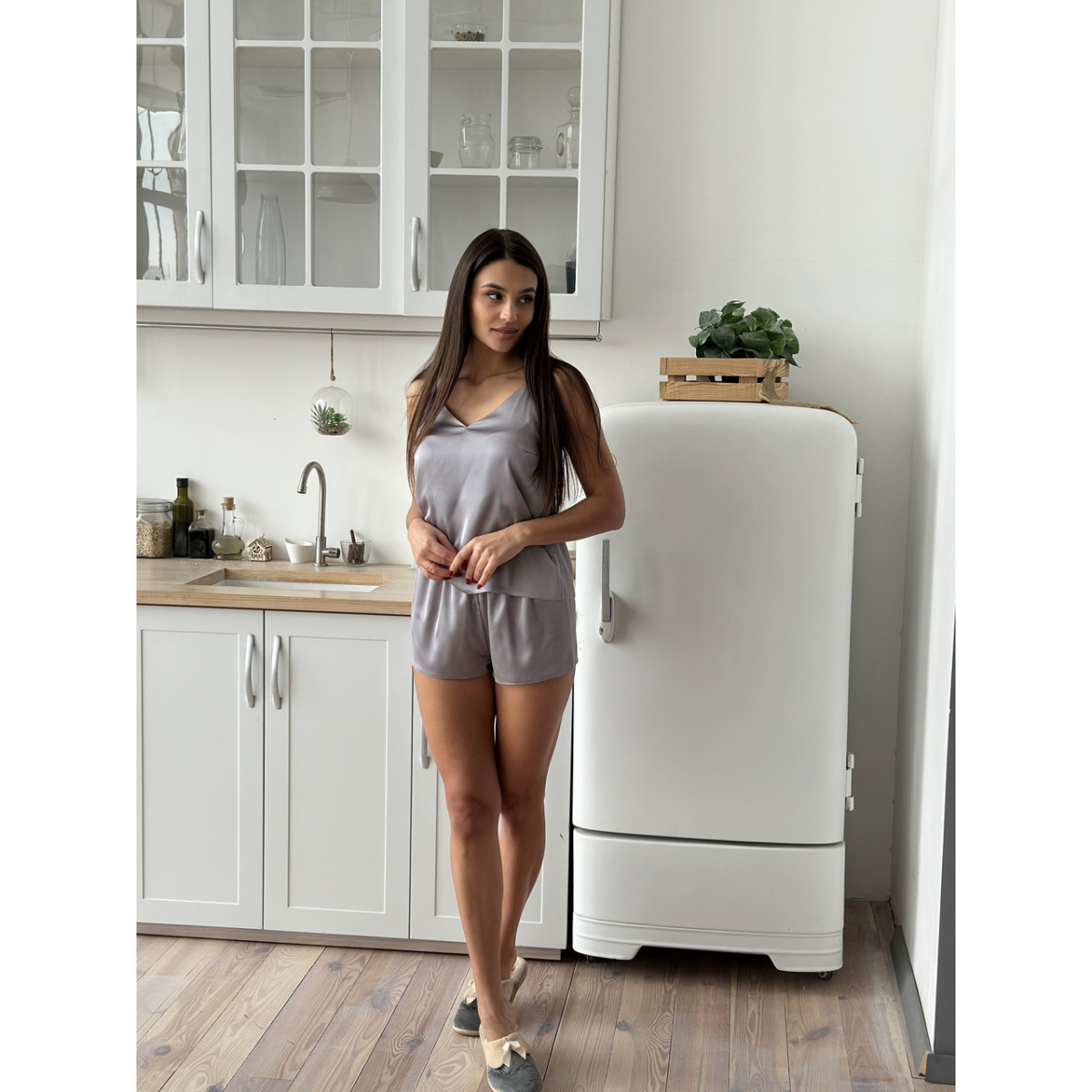 Жіноча піжама із шовку Армані (майка на бретелях + шорти) — легкість і витончений комфорт Піжама із ніжного шовку Армані — це ідеальне поєднання елегантності та зручності. М“яка тканина з благородним блиском приємно торкається шкіри та дарує відчуття ніжності. Особливості моделі: Майка на регульованих бретелях для ідеальної посадки Вільні шорти забезпечують максимальний комфорт Виконана з преміального шовку Армані — легкого, дихаючого матеріалу з сатиновим ефектом Лаконічний елегантний дизайн підходить для дому, сну та відпочинку Обирайте справжню ніжність і стиль — обирайте жіночу піжаму із шовку Армані для найзатишніших моментів.