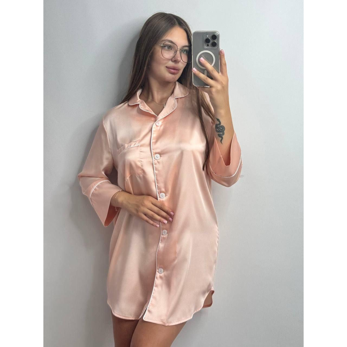 Жіноча нічна сорочка подовжена шовкова L, Персик