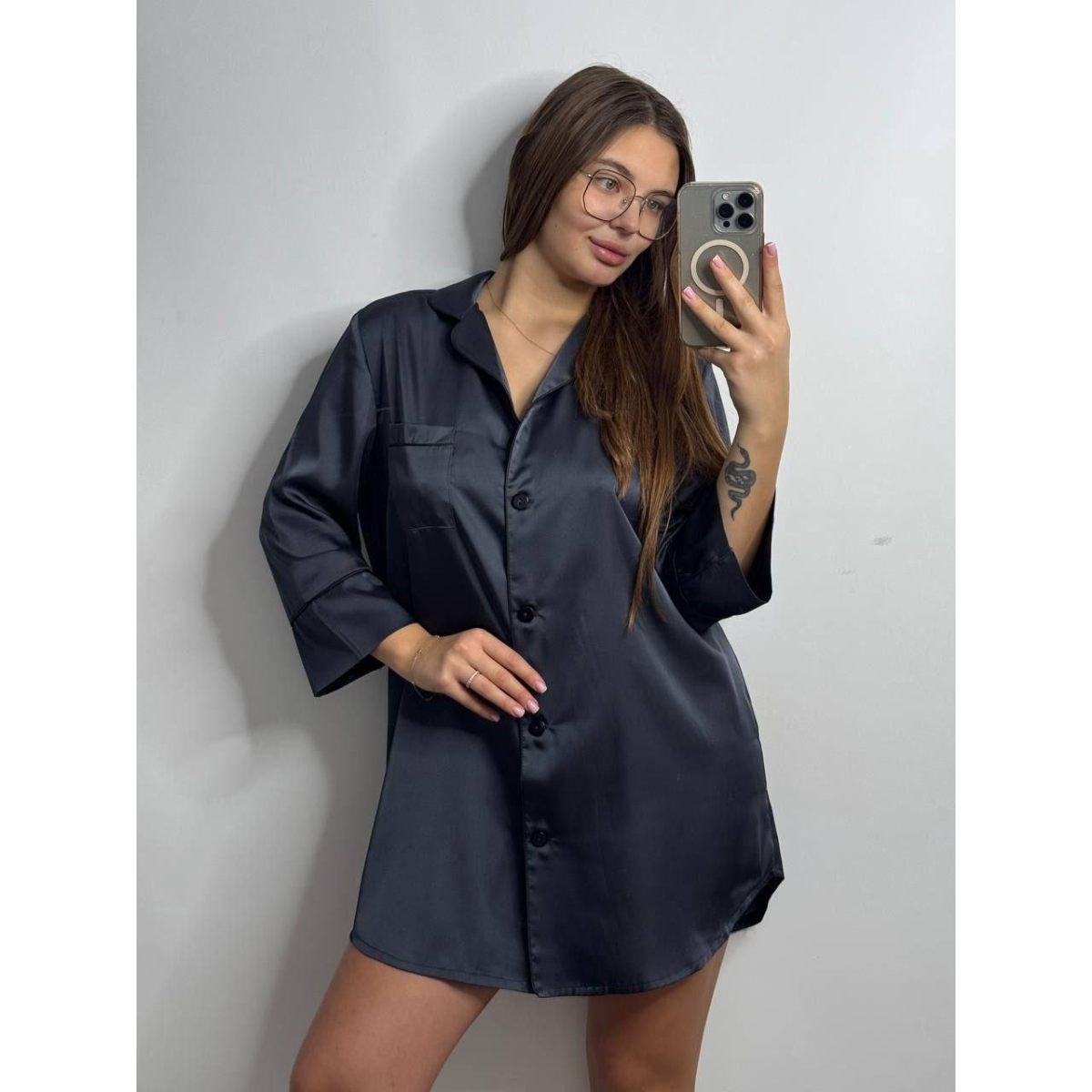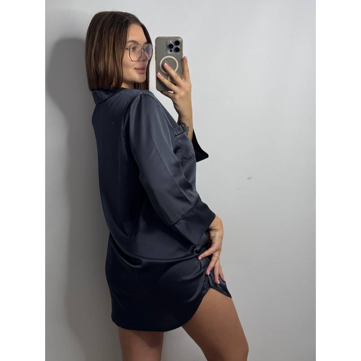 Жіноча нічна сорочка подовжена шовкова ХL, Графіт