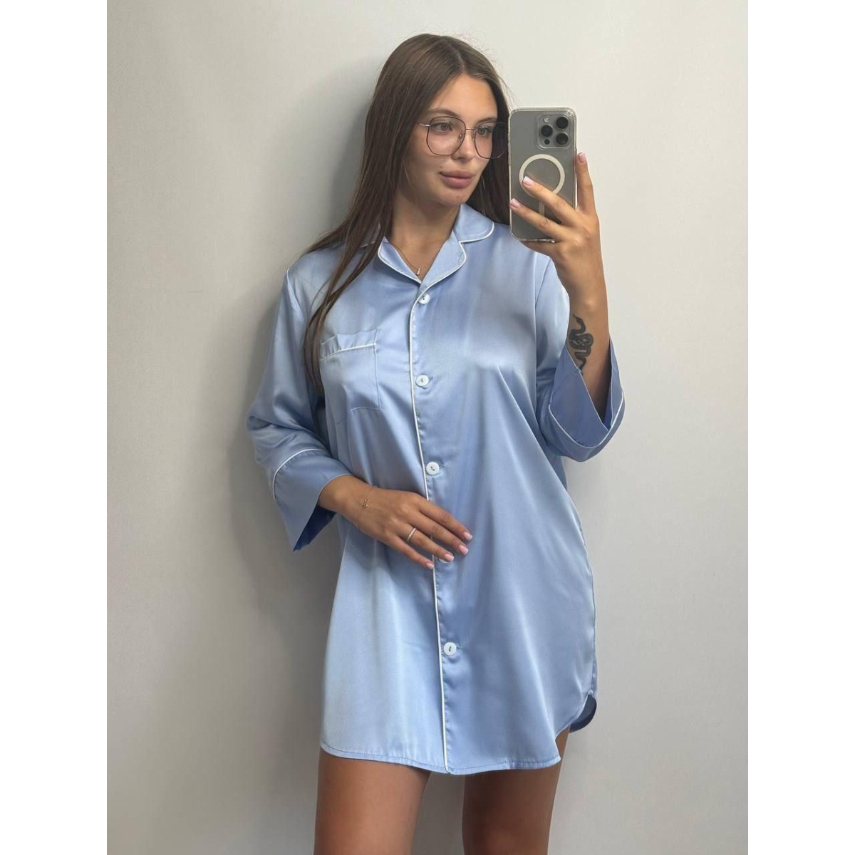 Жіноча нічна сорочка подовжена шовкова XL, Блакитний