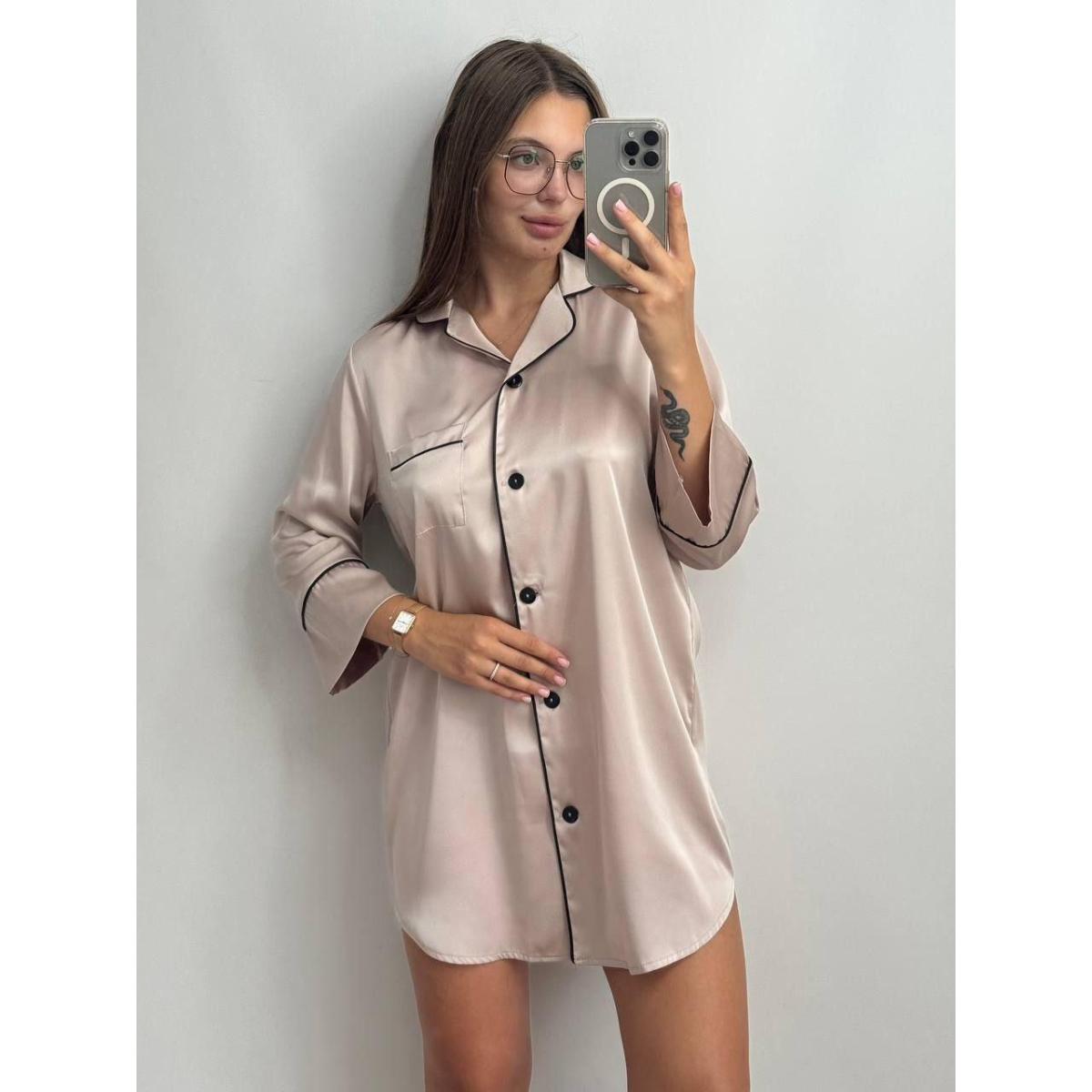 Жіноча нічна сорочка подовжена шовкова. XL, Світлий беж