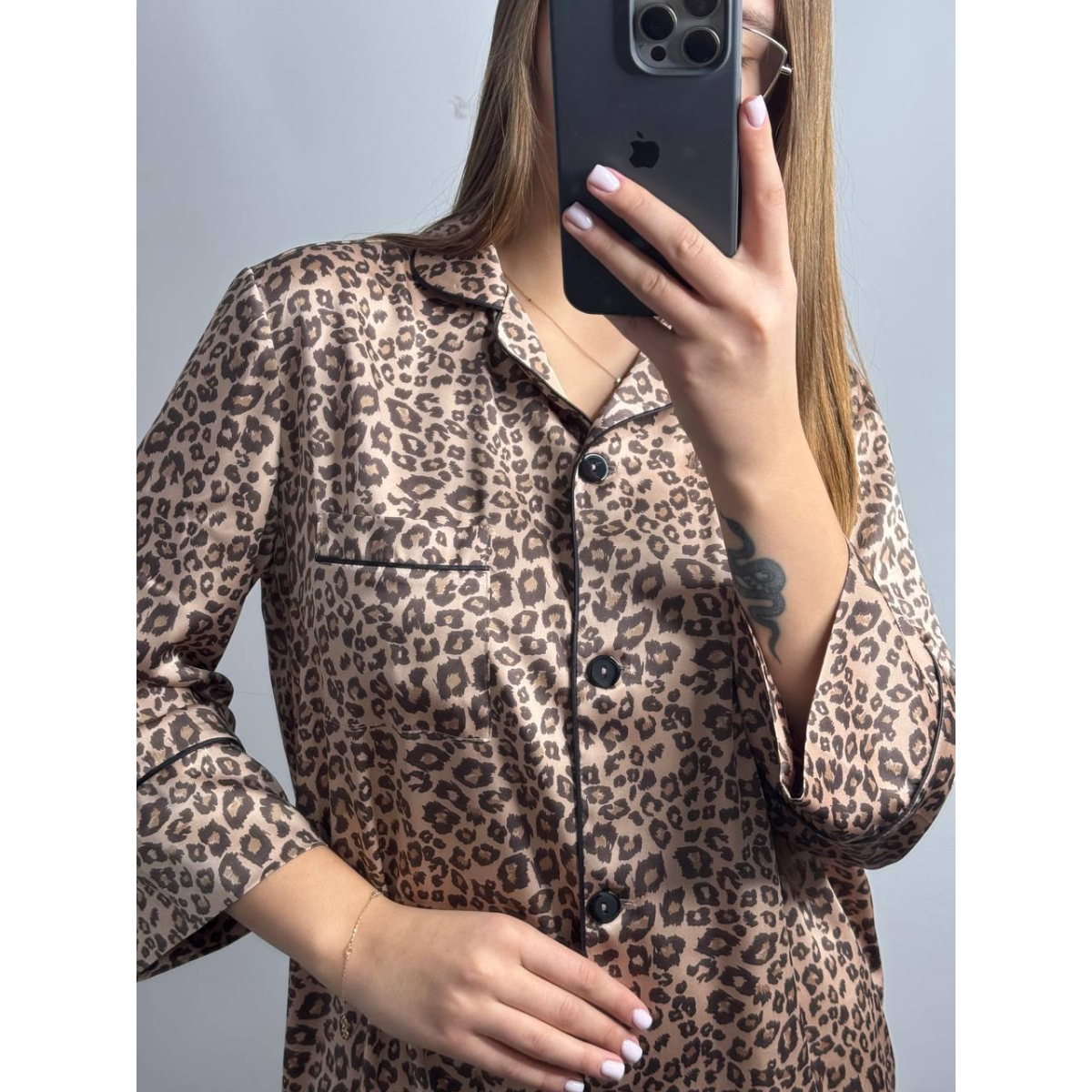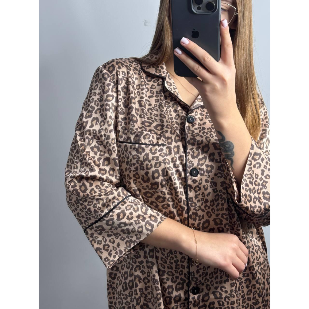 Жіноча нічна сорочка подовжена шовкова. Леопард 4, M