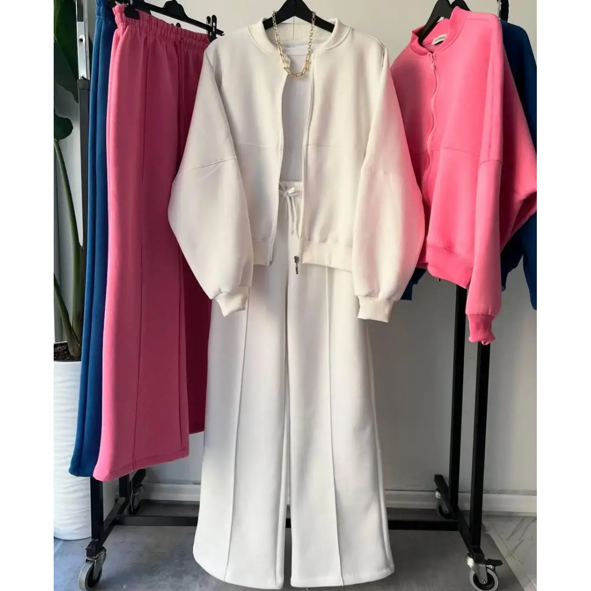 Жіночий костюм-двійка з широкими штанами Білий, 54/56