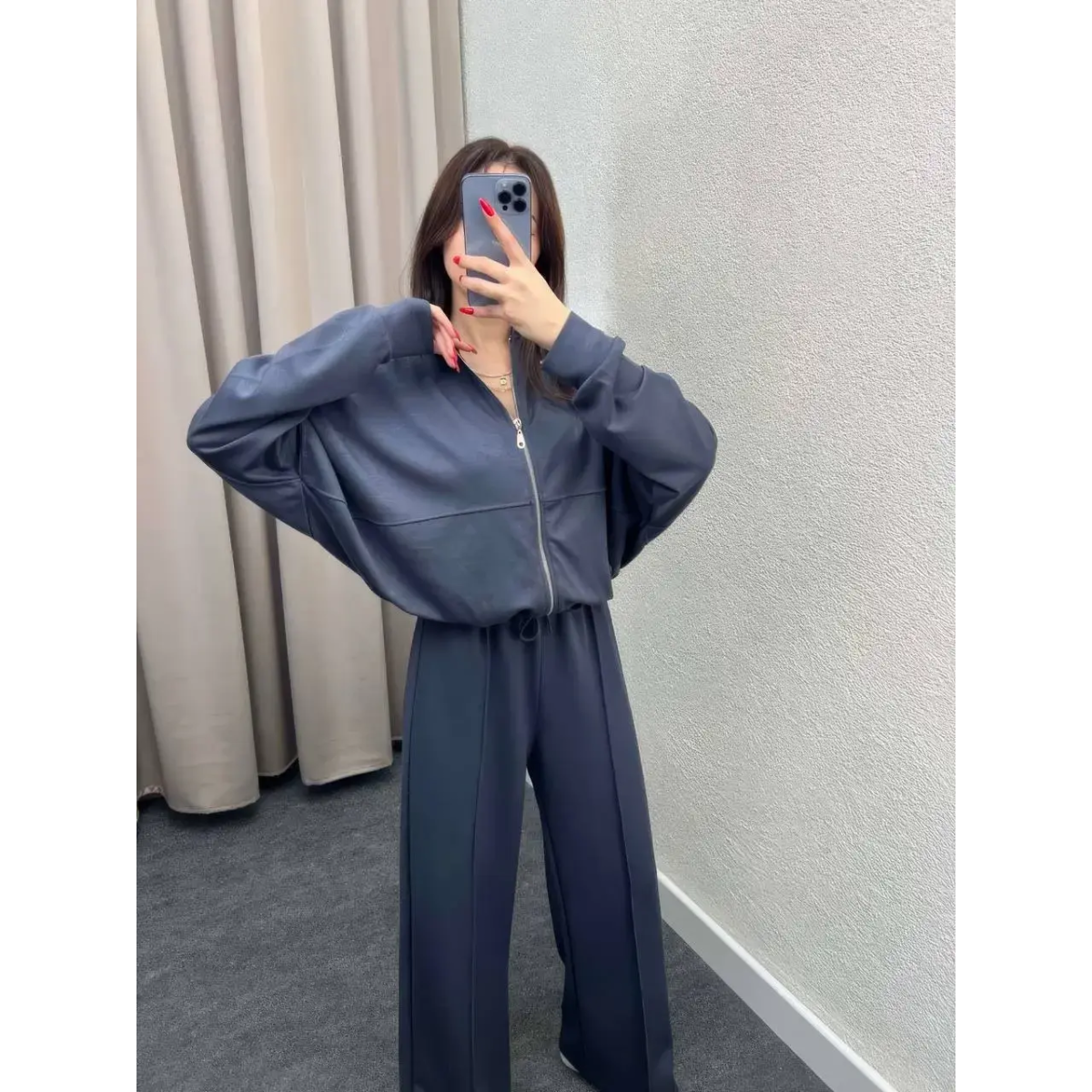 Жіночий костюм-двійка з широкими штанами Графіт, 54/56