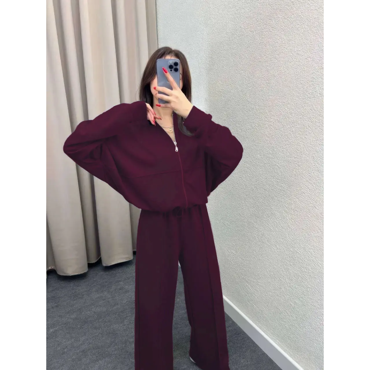 Жіночий костюм-двійка з широкими штанами Бордо, 54/56