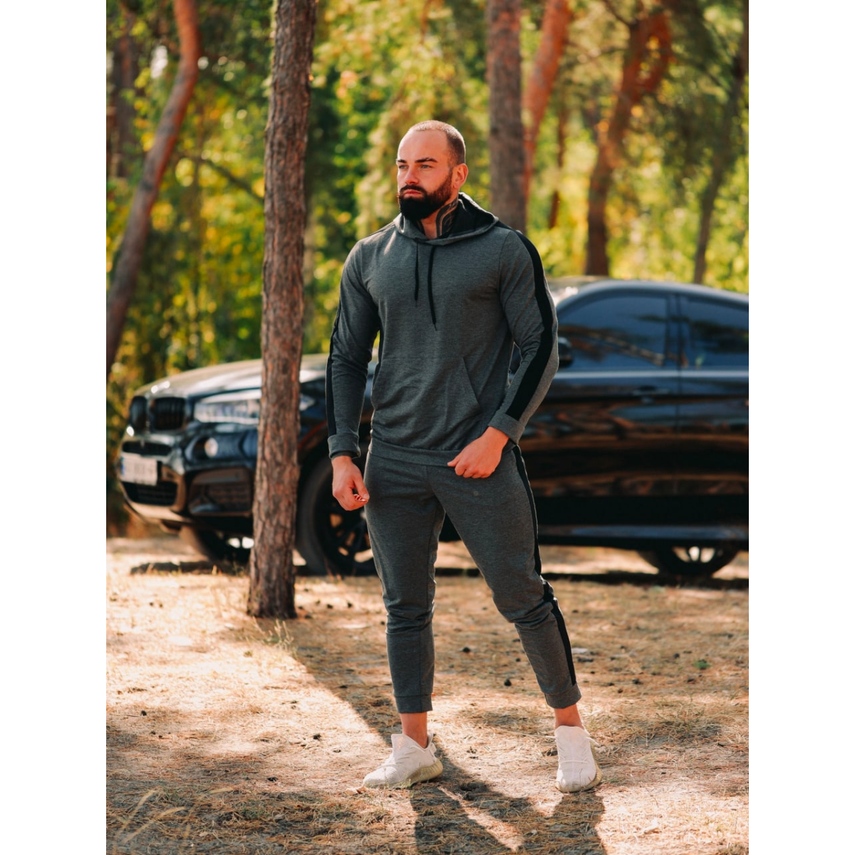 Костюм спортивний чоловічий Лампаси весна Сіро-чорний, S