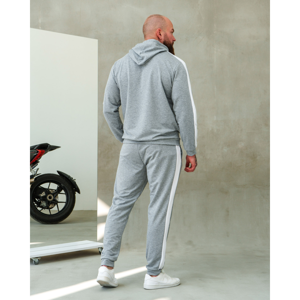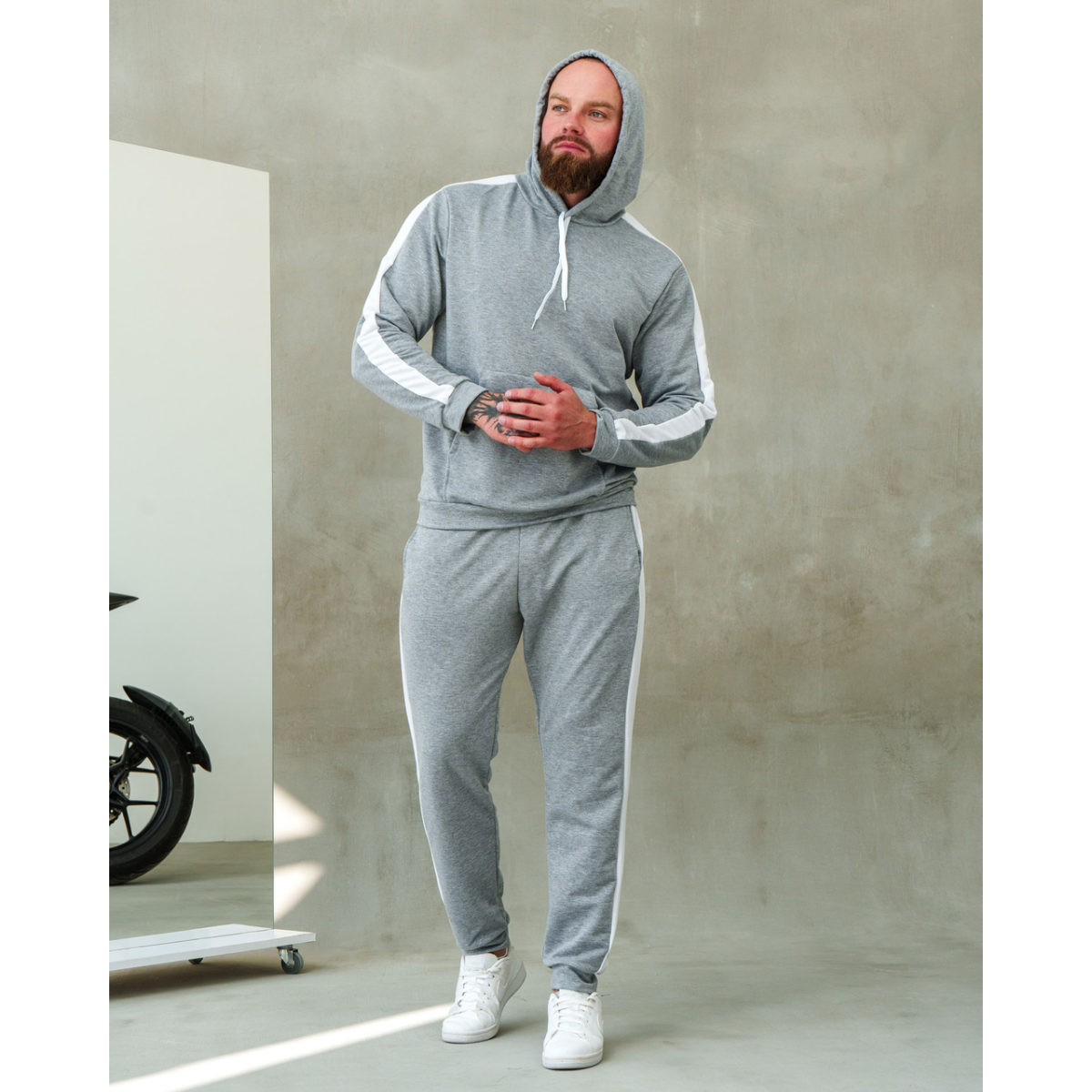 Костюм спортивний чоловічий Лампаси весна Сіро-білий, M