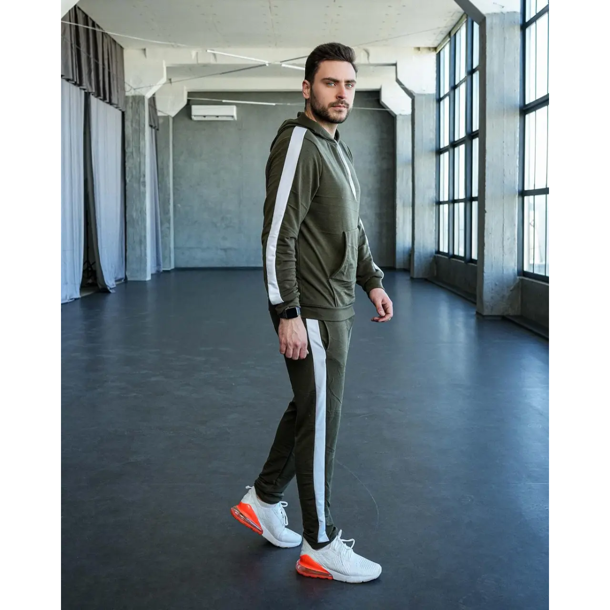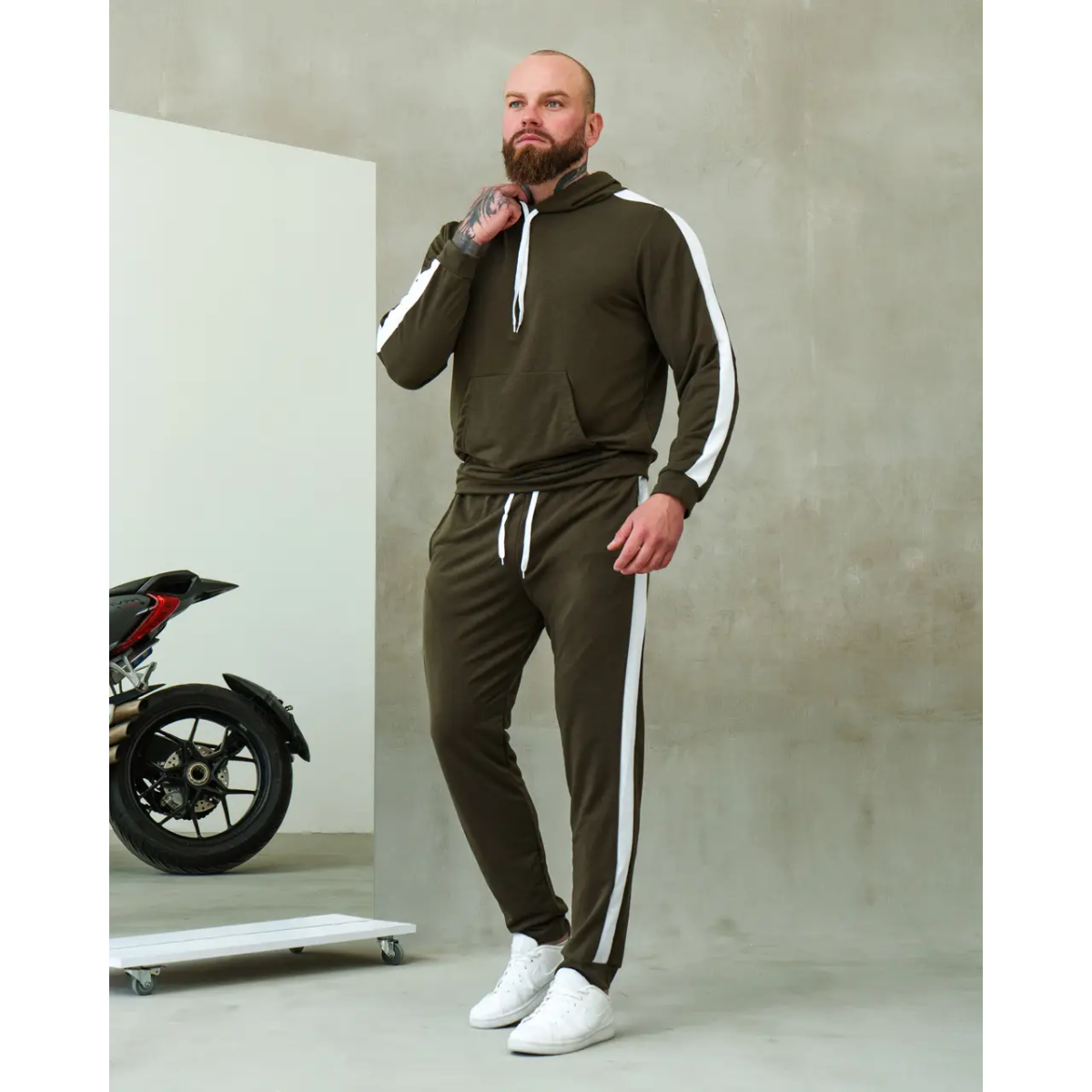 Костюм спортивний чоловічий Лампаси весна Хакі-білий, XL