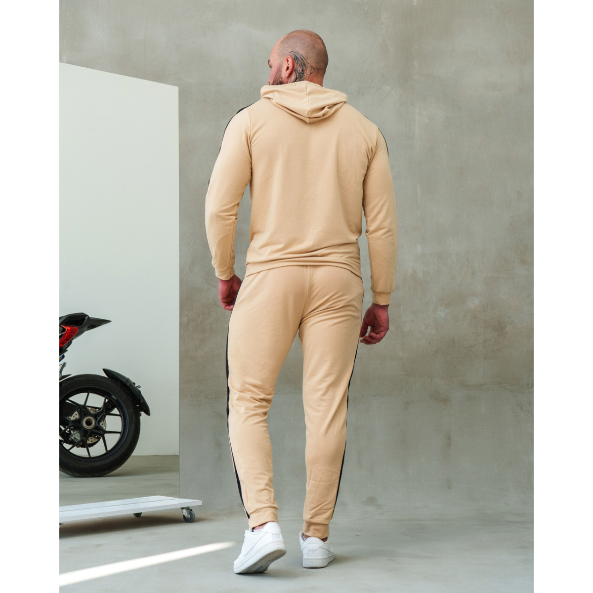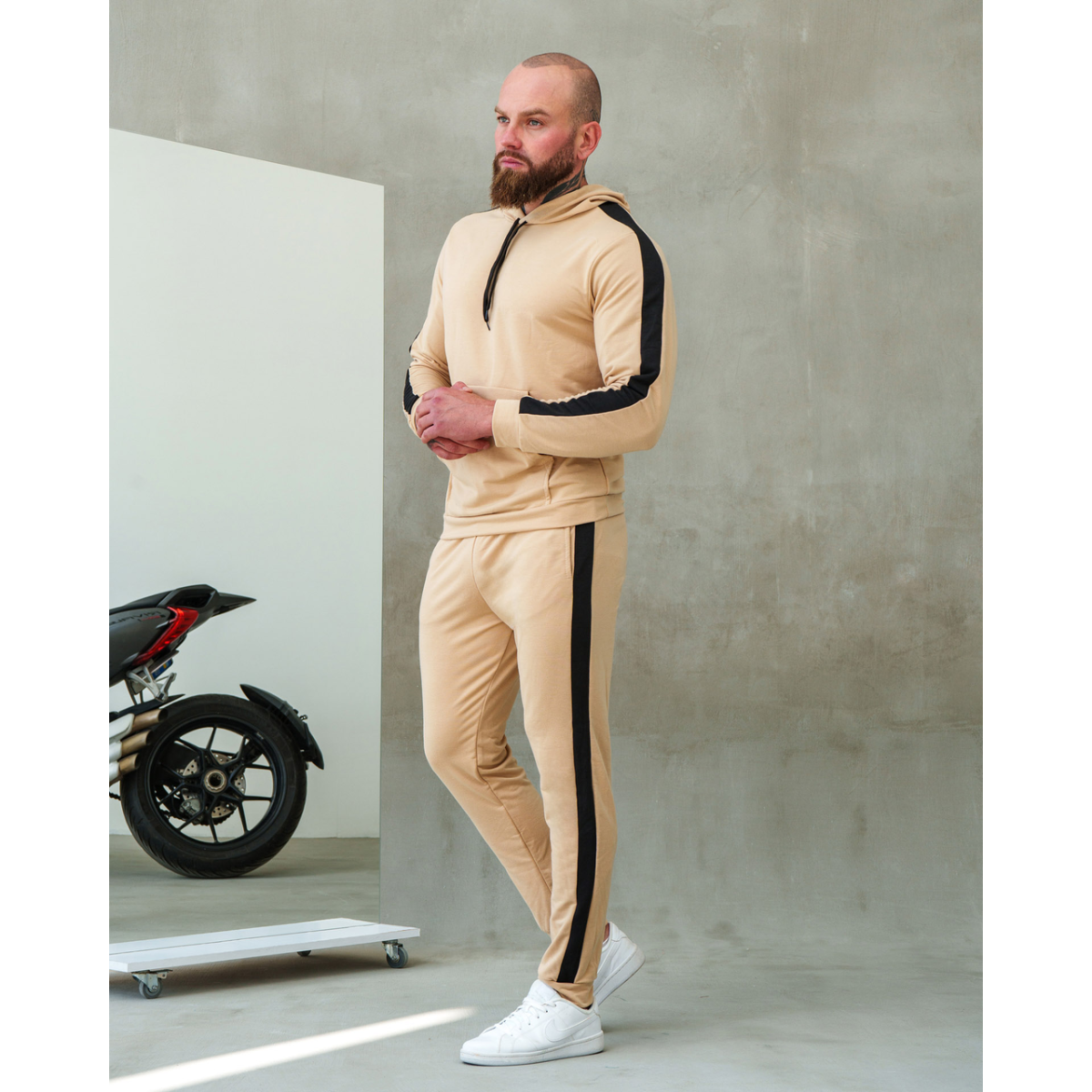 Костюм спортивний чоловічий Лампаси весна Бежево-чорний, L