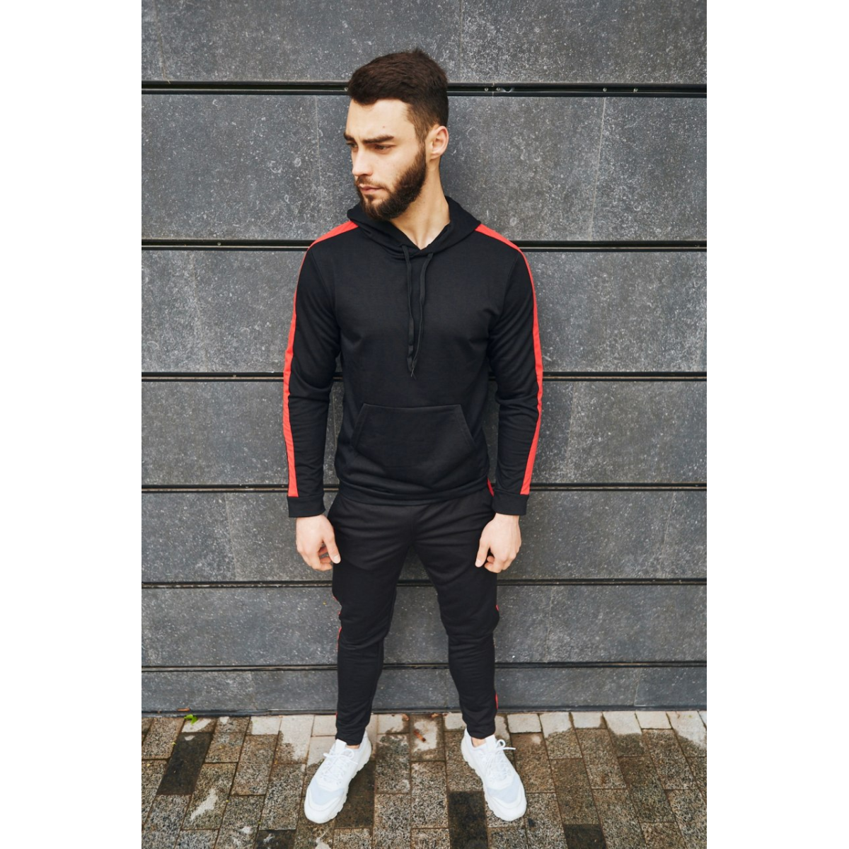 Костюм спортивний чоловічий Лампаси весна Чорно-червоний S