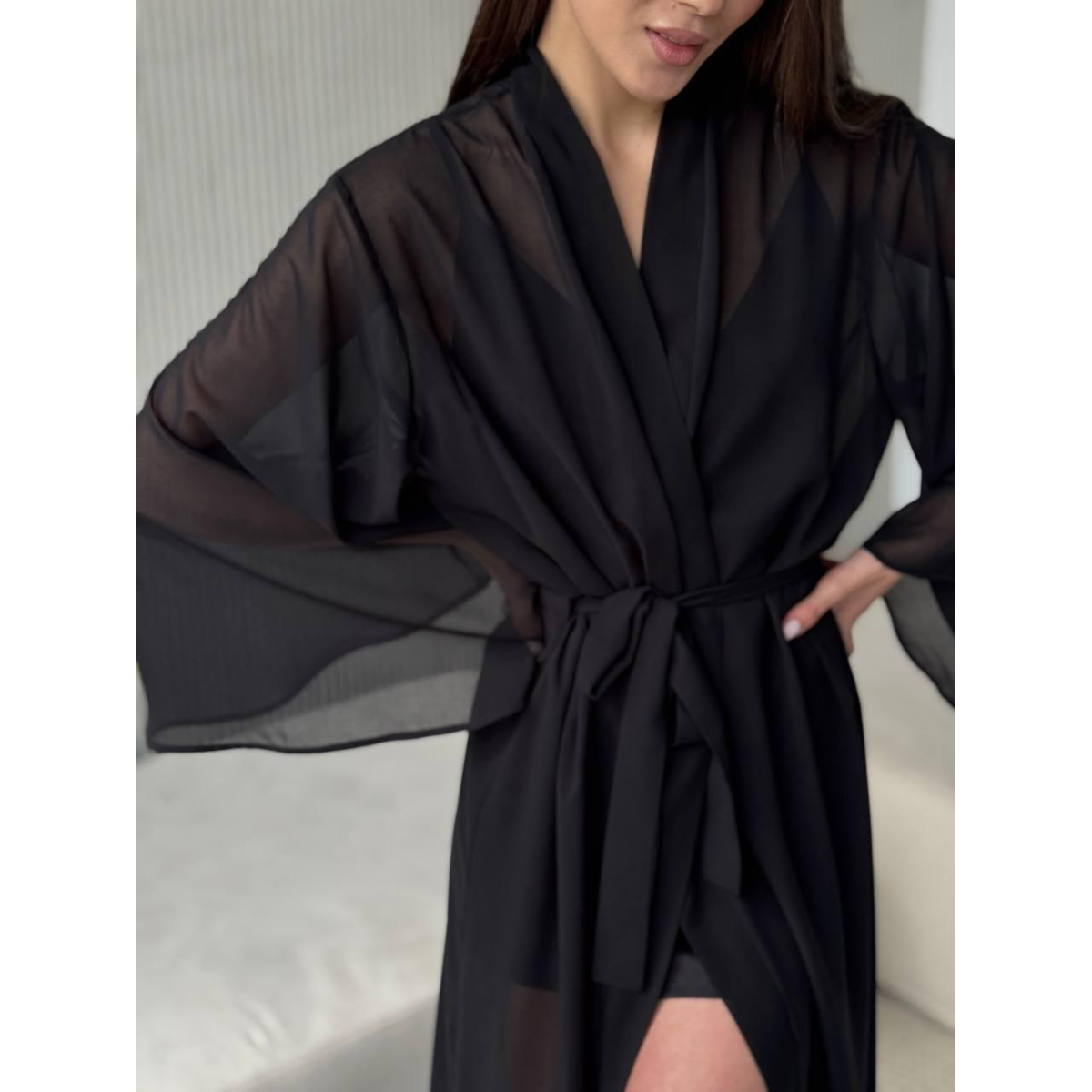 Елегантний і легкий довгий халат з шифону, який стане ідеальним доповненням до вашого гардеробу. Цей халат підкреслить вашу жіночність і створить відчуття затишку і розкоші. Ідеальний для дому, спа-процедур або в якості пляжного вбрання.