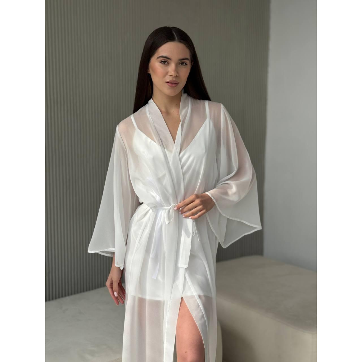 Елегантний і легкий довгий халат з шифону, який стане ідеальним доповненням до вашого гардеробу. Цей халат підкреслить вашу жіночність і створить відчуття затишку і розкоші. Ідеальний для дому, спа-процедур або в якості пляжного вбрання.