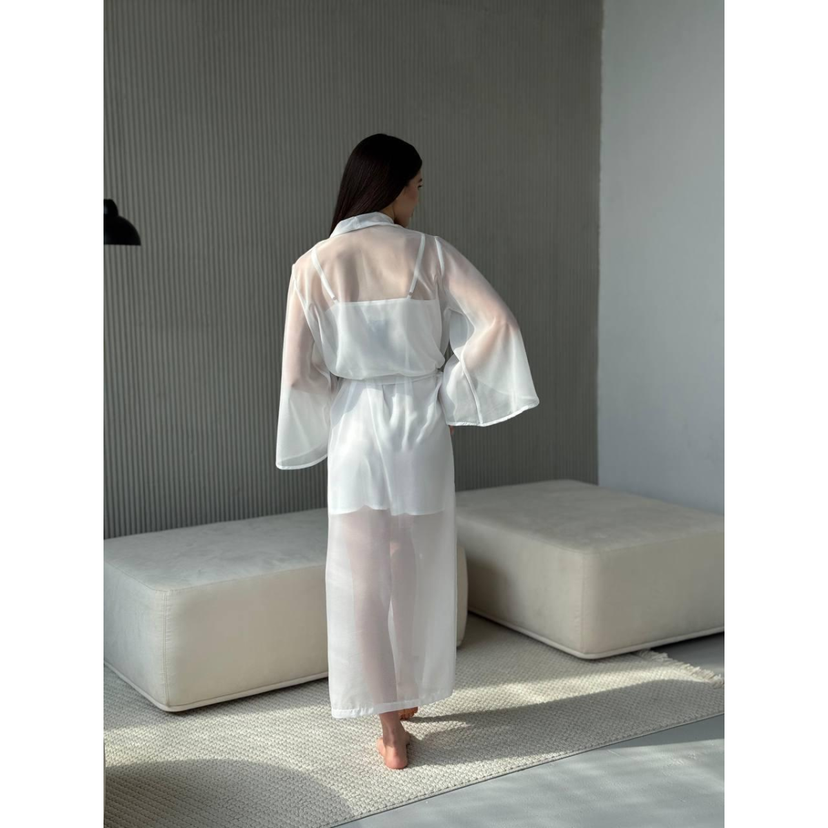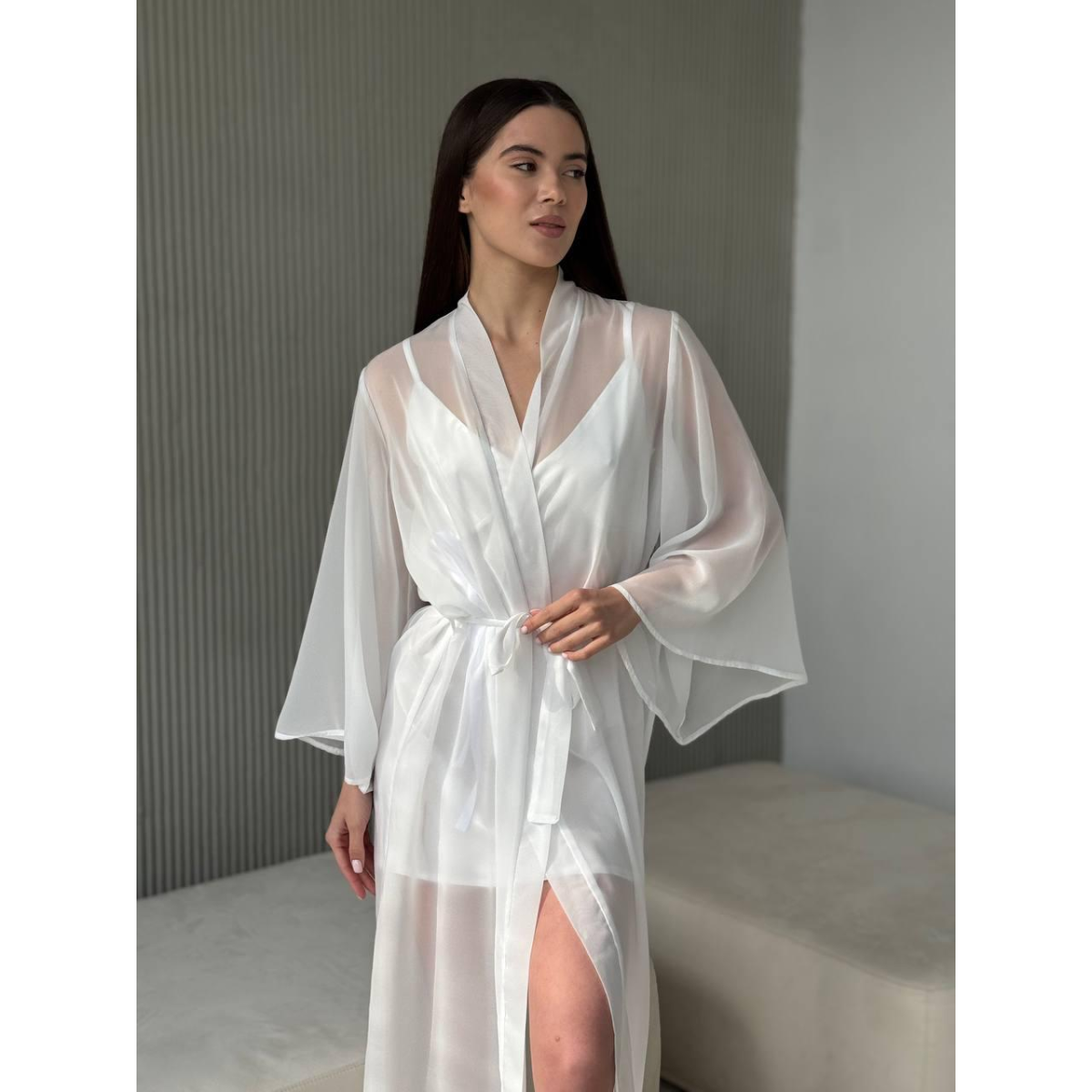 Елегантний і легкий довгий халат з шифону, який стане ідеальним доповненням до вашого гардеробу. Цей халат підкреслить вашу жіночність і створить відчуття затишку і розкоші. Ідеальний для дому, спа-процедур або в якості пляжного вбрання.