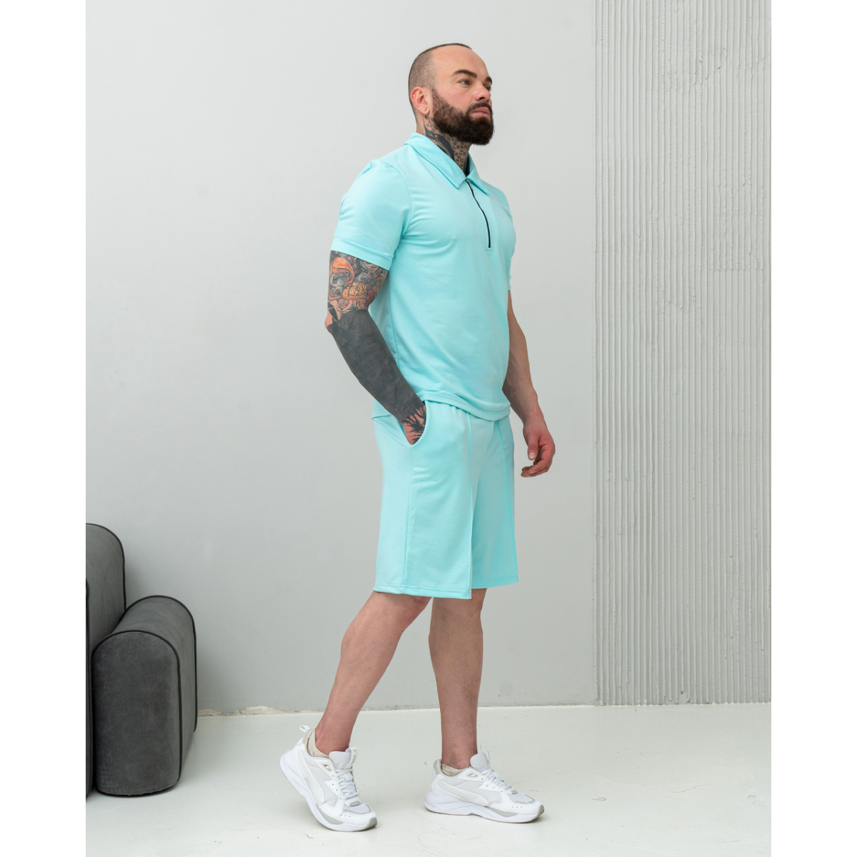 Комплект чоловічий футболка шорти Блакитний, S