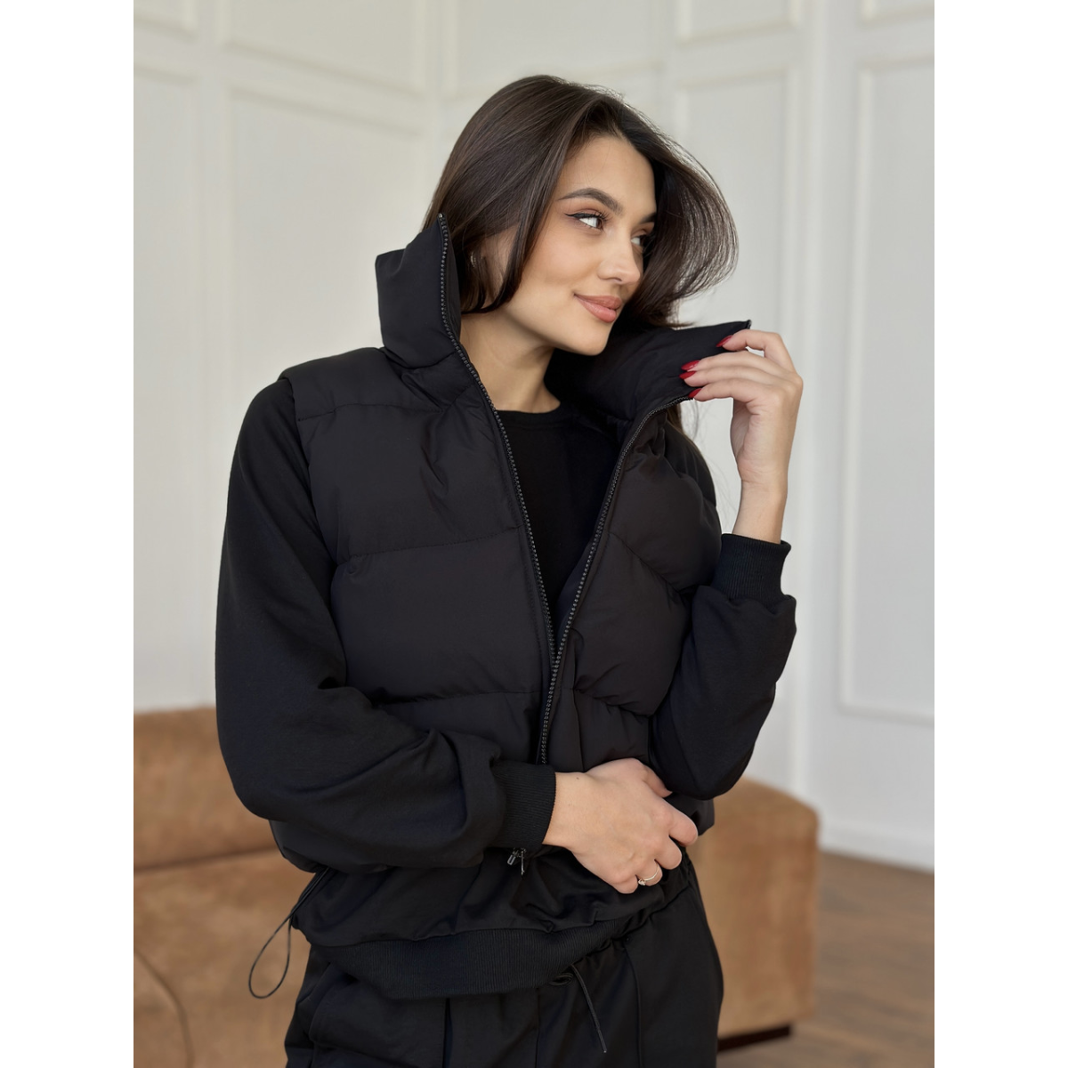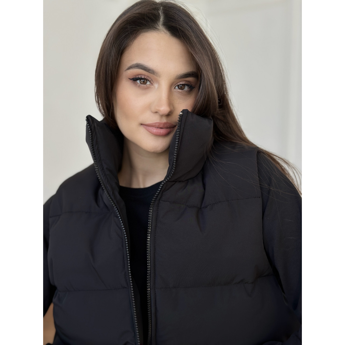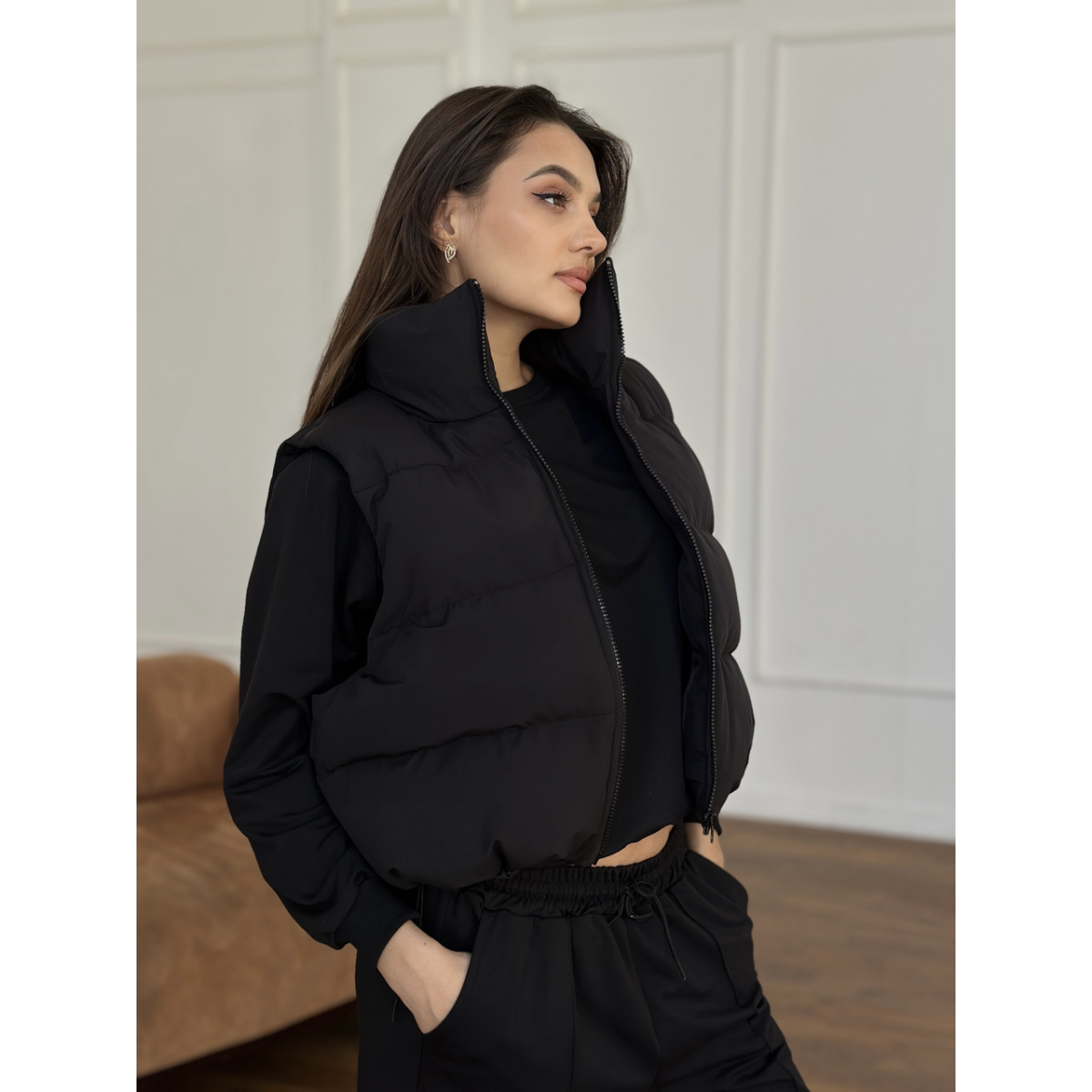 ???? Модна чорна жилетка жіноча укорочена — ідеальний вибір для весни, осені та теплої зими. Актуальний фасон, який пасує до будь-якого стилю: street style, casual або sporty chic.