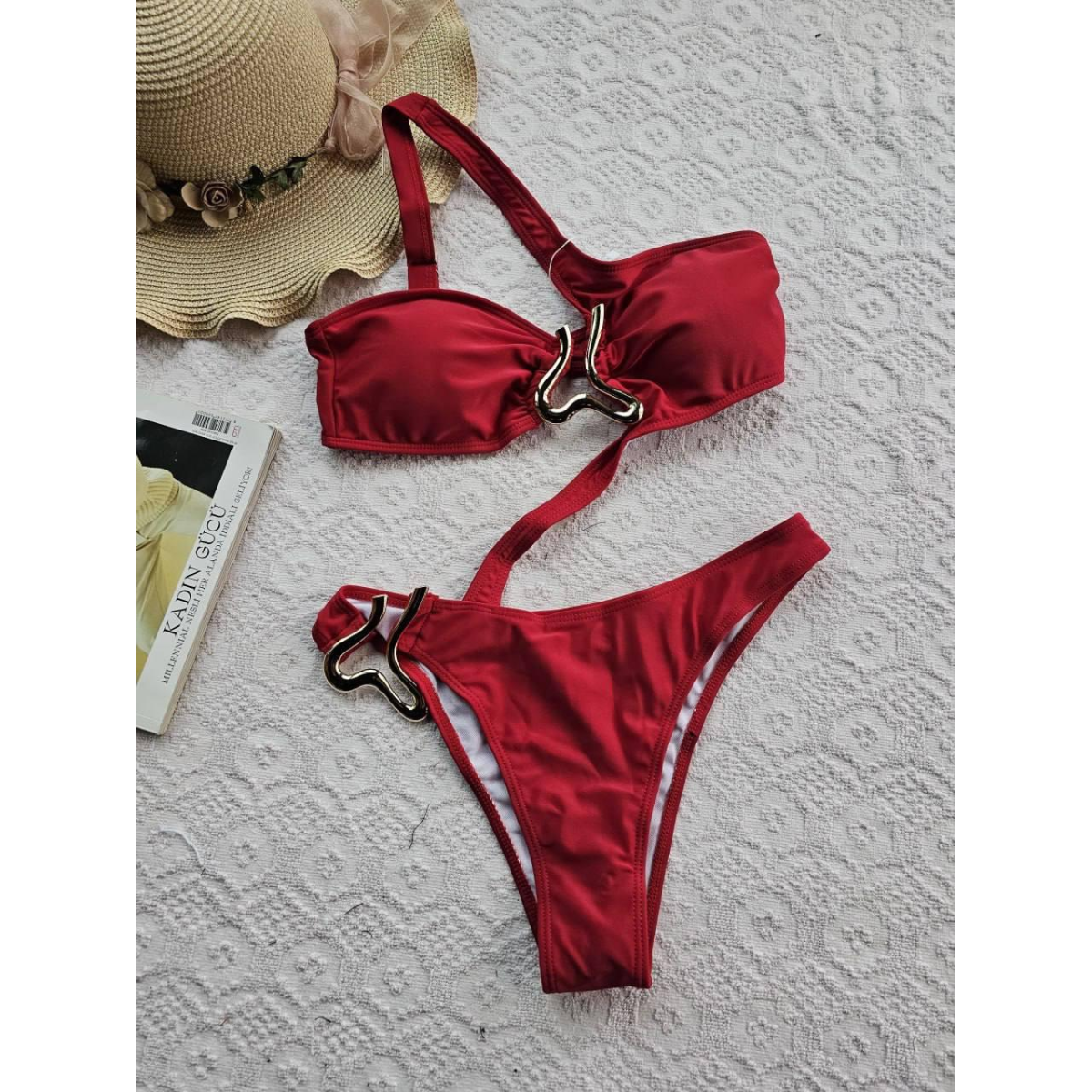 Жіночий суцільний купальник на одне плече Червоний M