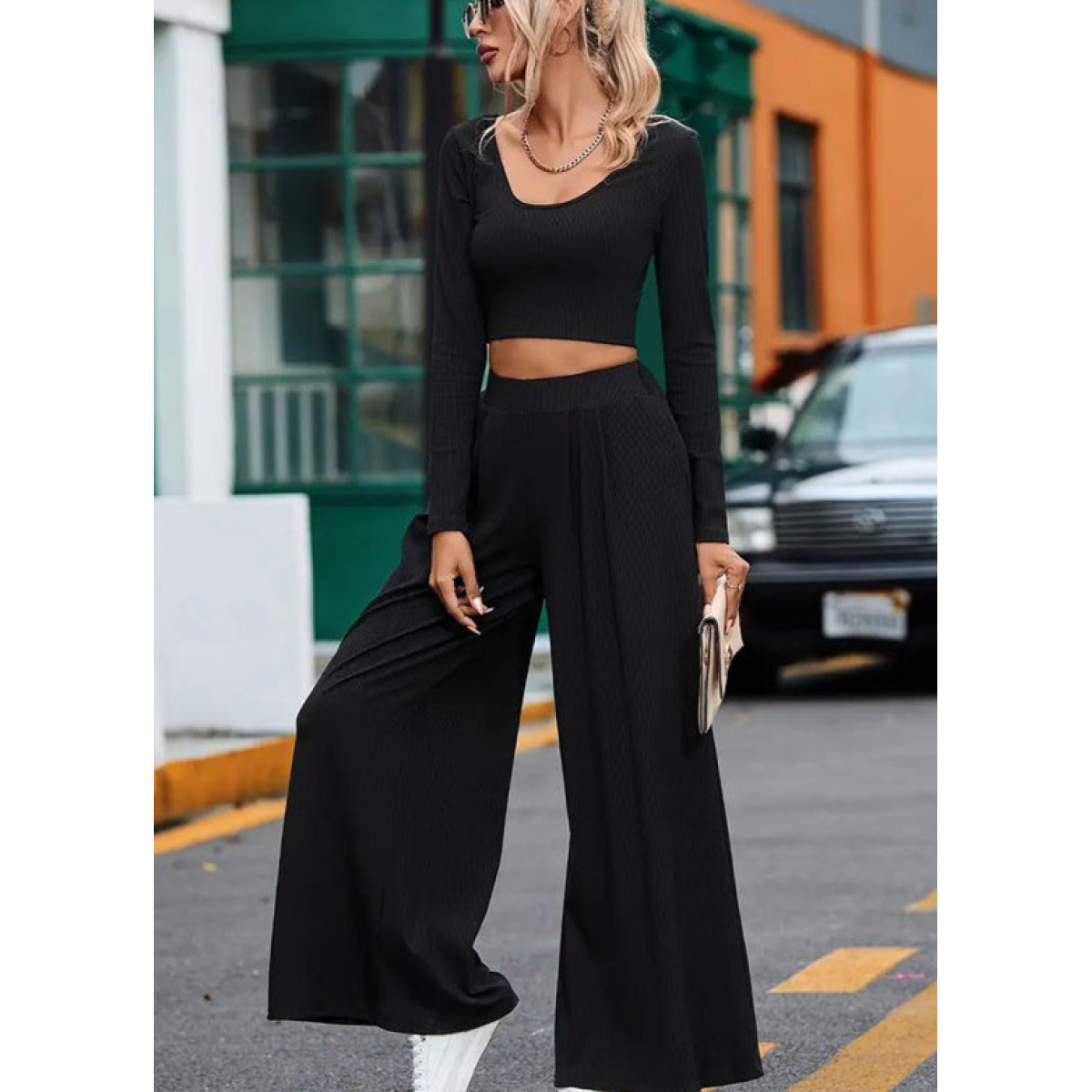 Жіночий костюм з тканини рубчик з довгим рукавом і вільними штанами