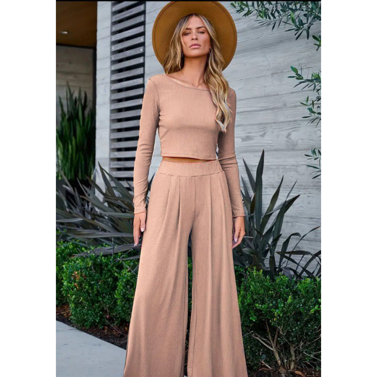 Модний і зручний жіночий костюм з високоякісного рубчика ідеально підійде для активного відпочинку та повсякденного носіння. Легка й еластична тканина не тільки комфортна в носінні, а й дає змогу шкірі дихати. У комплект входить стильний лонгслів з довгим рукавом, який не обтягує тіло, і вільні штани зі зручною посадкою, що створюють розслаблений і сучасний силует.
