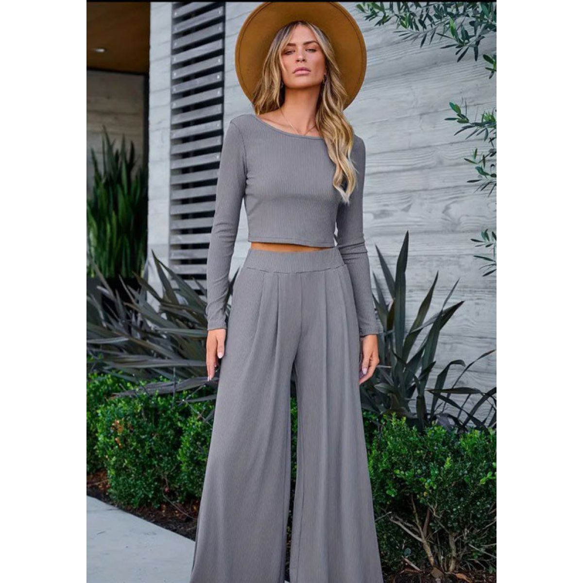 Модний і зручний жіночий костюм з високоякісного рубчика ідеально підійде для активного відпочинку та повсякденного носіння. Легка й еластична тканина не тільки комфортна в носінні, а й дає змогу шкірі дихати. У комплект входить стильний лонгслів з довгим рукавом, який не обтягує тіло, і вільні штани зі зручною посадкою, що створюють розслаблений і сучасний силует.