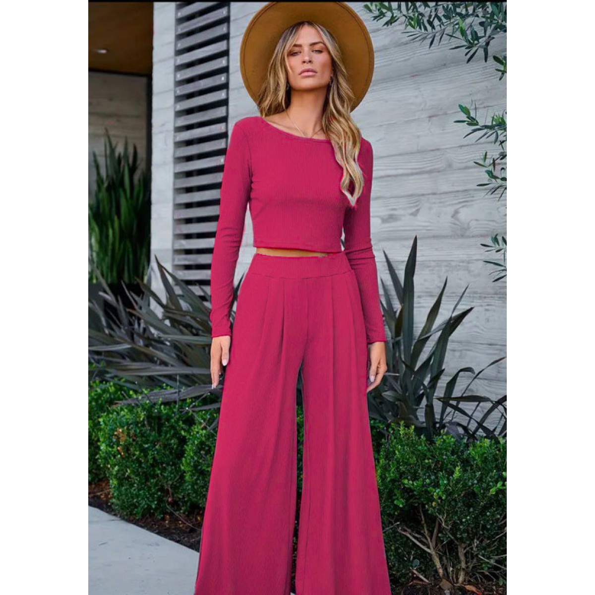Жіночий костюм з тканини рубчик з довгим рукавом і вільними штанами