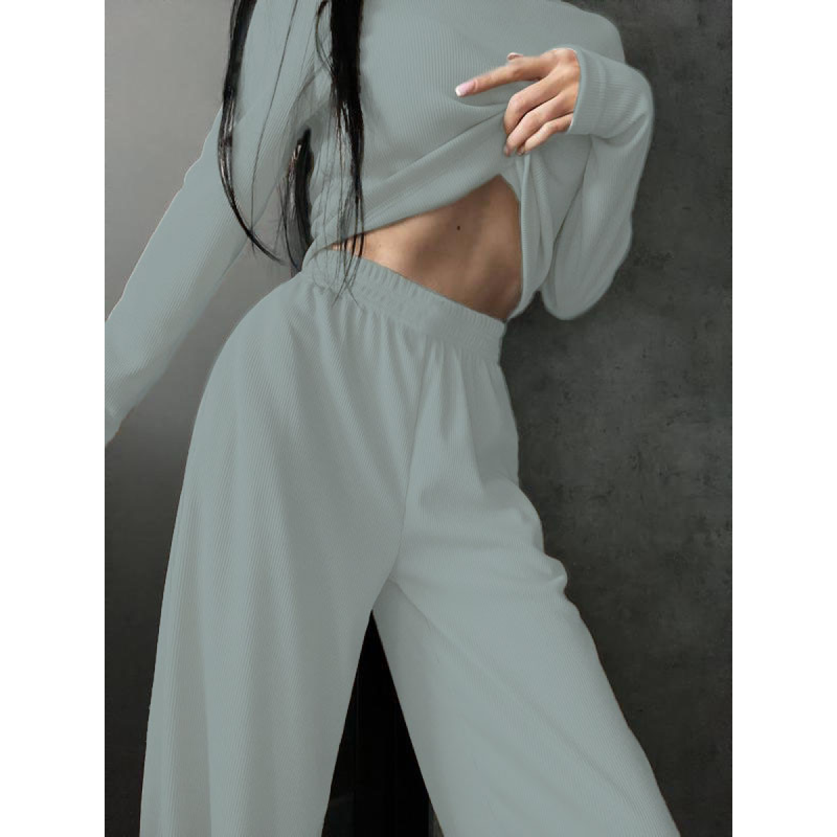 Жіночий костюм з тканини рубчик з довгим рукавом і вільними штанами