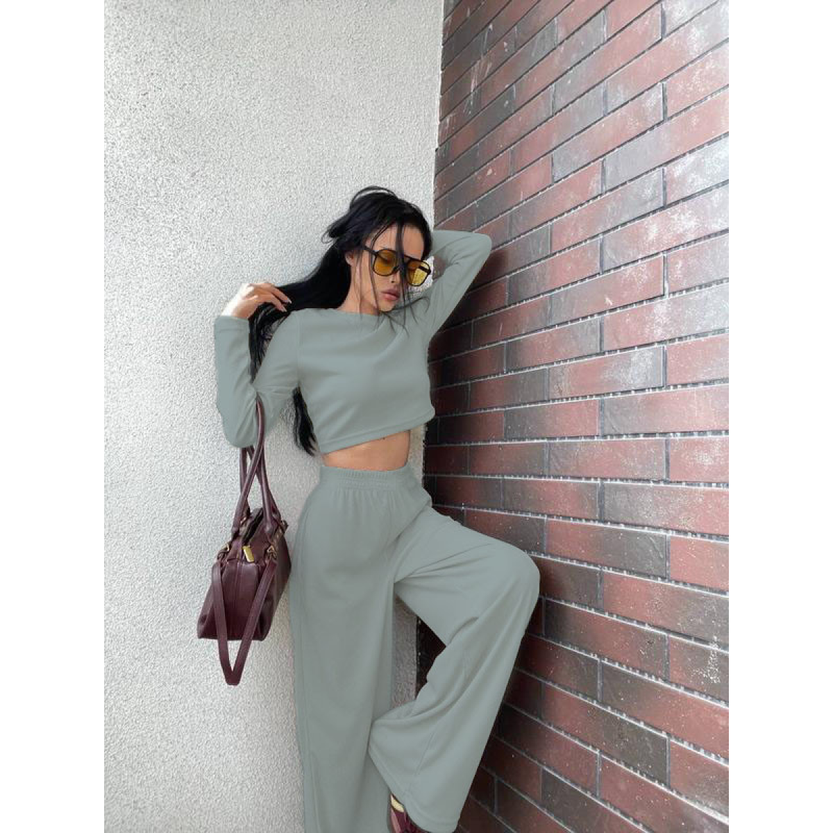 Модний і зручний жіночий костюм з високоякісного рубчика ідеально підійде для активного відпочинку та повсякденного носіння. Легка й еластична тканина не тільки комфортна в носінні, а й дає змогу шкірі дихати. У комплект входить стильний лонгслів з довгим рукавом, який не обтягує тіло, і вільні штани зі зручною посадкою, що створюють розслаблений і сучасний силует.