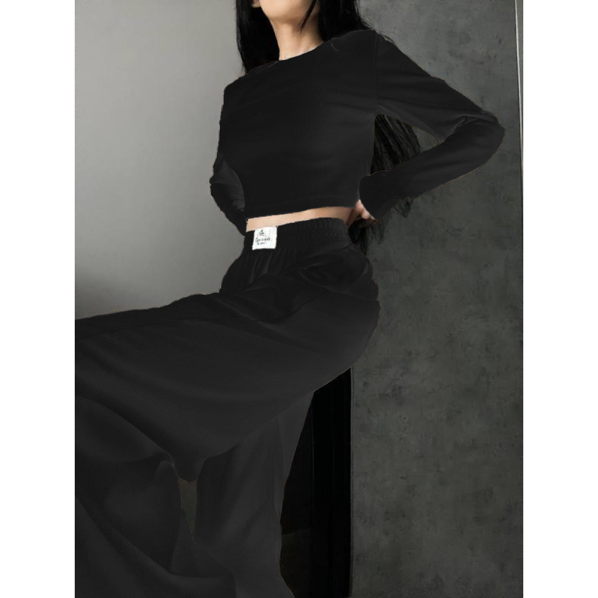 Модний і зручний жіночий костюм з високоякісного рубчика ідеально підійде для активного відпочинку та повсякденного носіння. Легка й еластична тканина не тільки комфортна в носінні, а й дає змогу шкірі дихати. У комплект входить стильний лонгслів з довгим рукавом, який не обтягує тіло, і вільні штани зі зручною посадкою, що створюють розслаблений і сучасний силует.