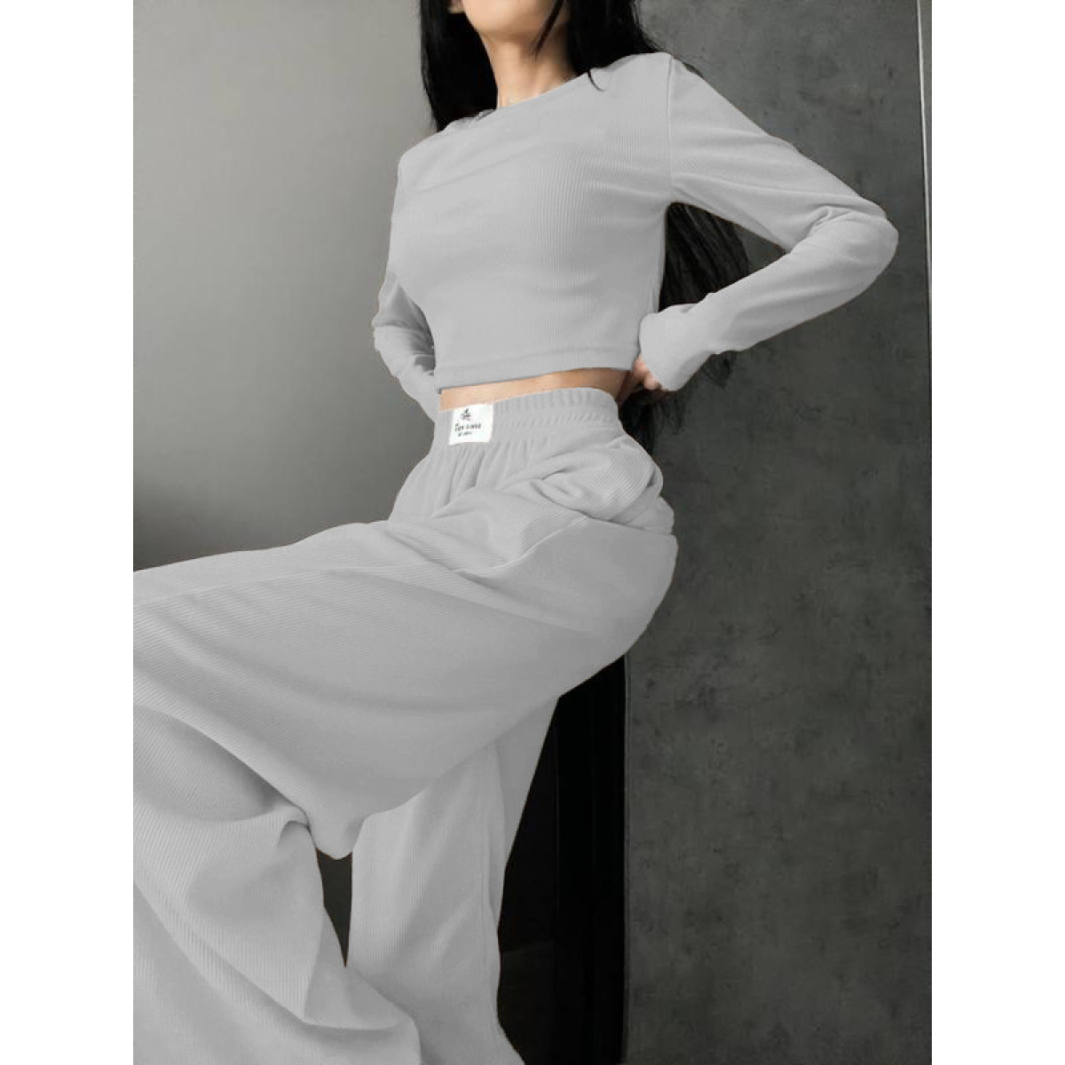 Модний і зручний жіночий костюм з високоякісного рубчика ідеально підійде для активного відпочинку та повсякденного носіння. Легка й еластична тканина не тільки комфортна в носінні, а й дає змогу шкірі дихати. У комплект входить стильний лонгслів з довгим рукавом, який не обтягує тіло, і вільні штани зі зручною посадкою, що створюють розслаблений і сучасний силует.